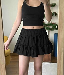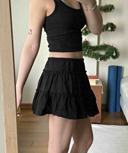 Elastik Bel Detaylı Volanlı Katmanlı Dokuma Etek Elastik Bel Detaylı Volanlı Katmanlı Dokuma Etek LX27ABHP L
