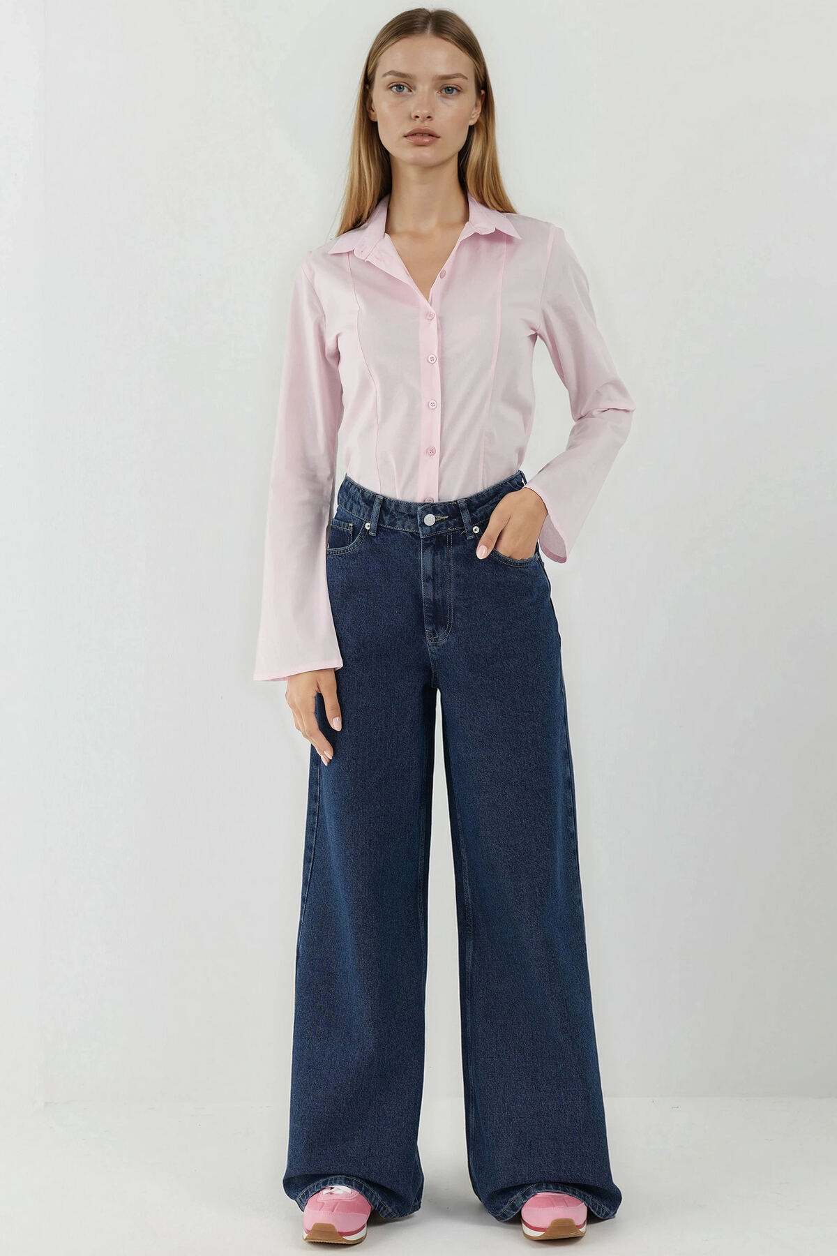 Yüksek Bel Wide Leg Jean Pantolon Yüksek Bel Wide Leg Jean Pantolon W1000000053-BL XL