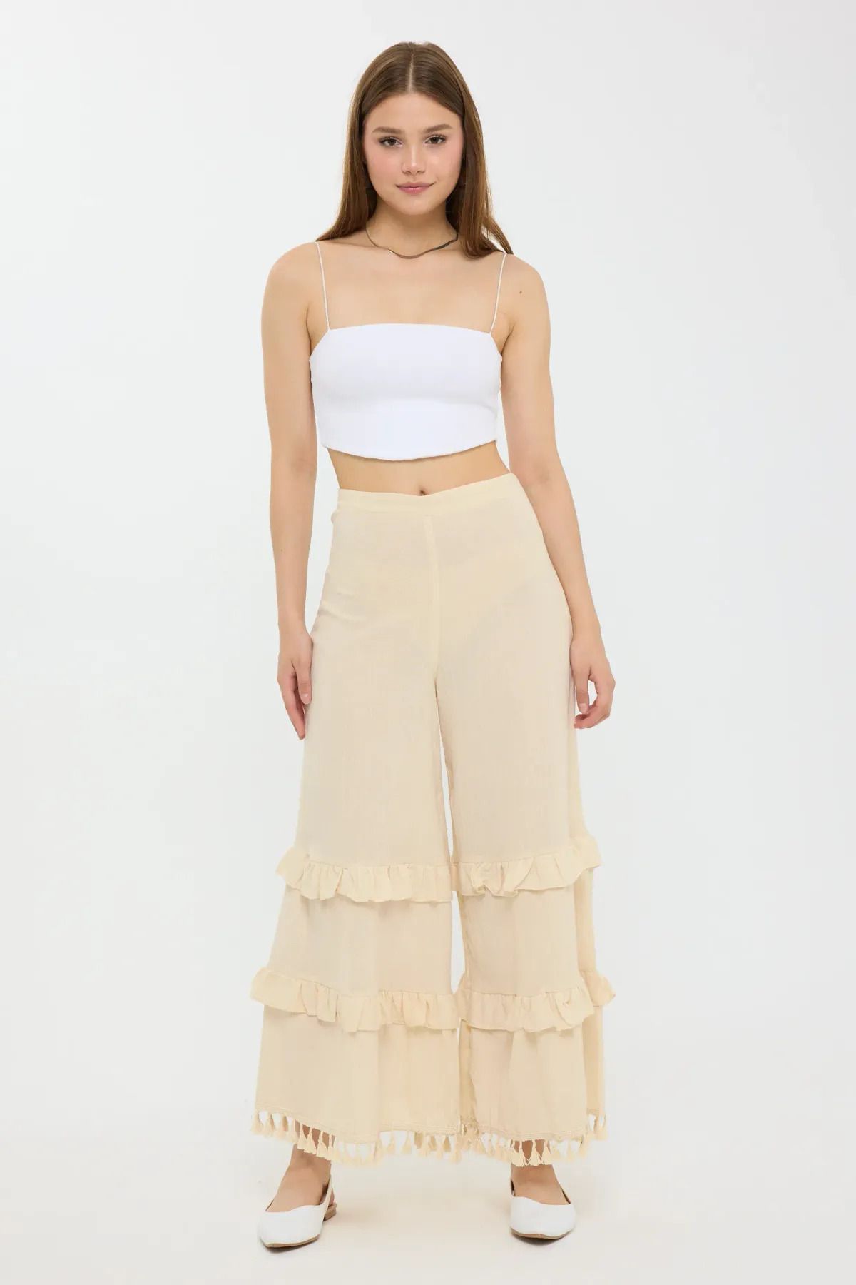 Püskül Uçlu Yüksek Bel Wide Leg Keten Pantolon Püskül Uçlu Yüksek Bel Wide Leg Keten Pantolon LX4BEPOC L