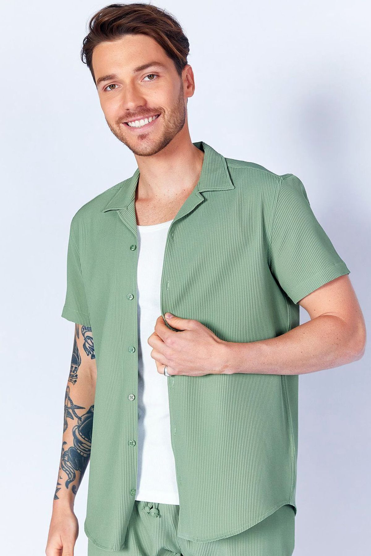 Apaş Yakalı Kısa Kollu Düğme Kapamalı Slim Fit Dar Kalıp Yazlık Ottoman Kumaş Likralı Gömlek Apaş Yakalı Kısa Kollu Düğme Kapamalı Slim Fit Dar Kalıp Yazlık Ottoman Kumaş Likralı Gömlek CBLG-0496 2XL