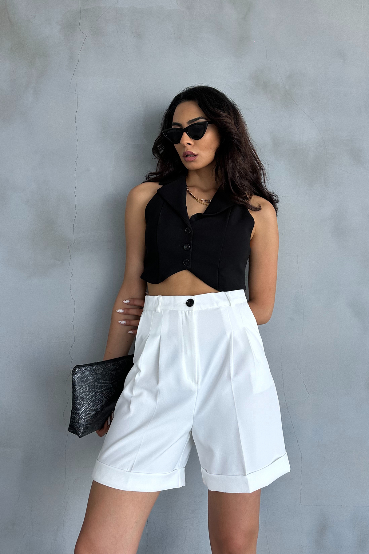 Cebi ve Kuşak Detaylı Pamuk Yüksek Bel Şort Cebi ve Kuşak Detaylı Pamuk Yüksek Bel Şort LX4BEPHR L