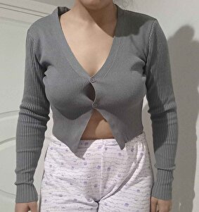 Düz V Yaka Crop Hırka Düz V Yaka Crop Hırka W8000000129-GR L