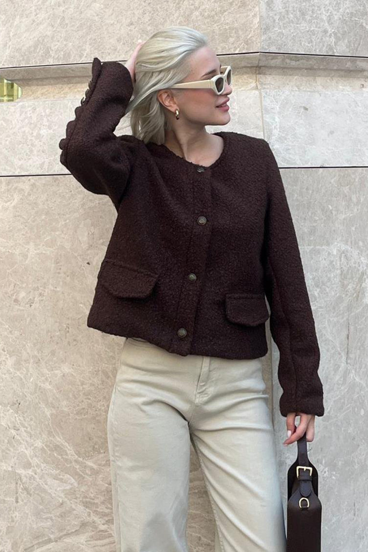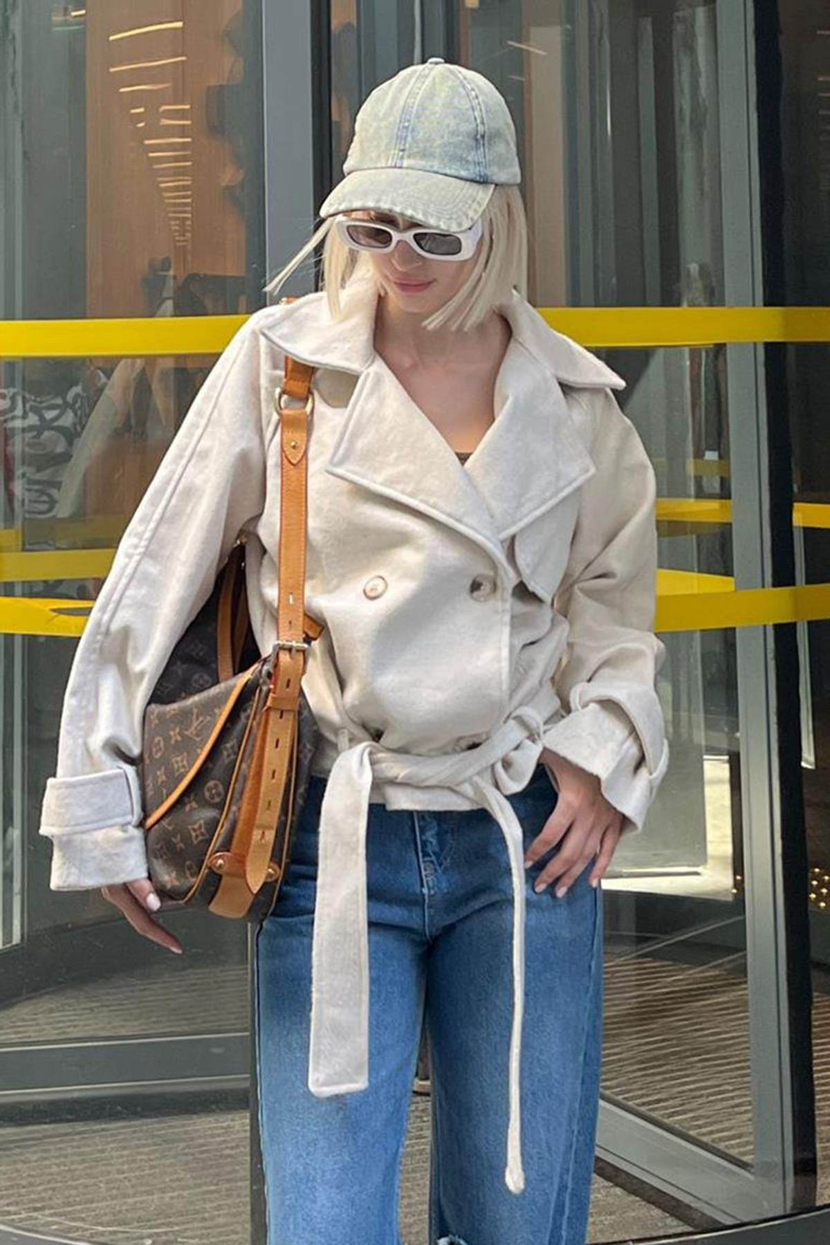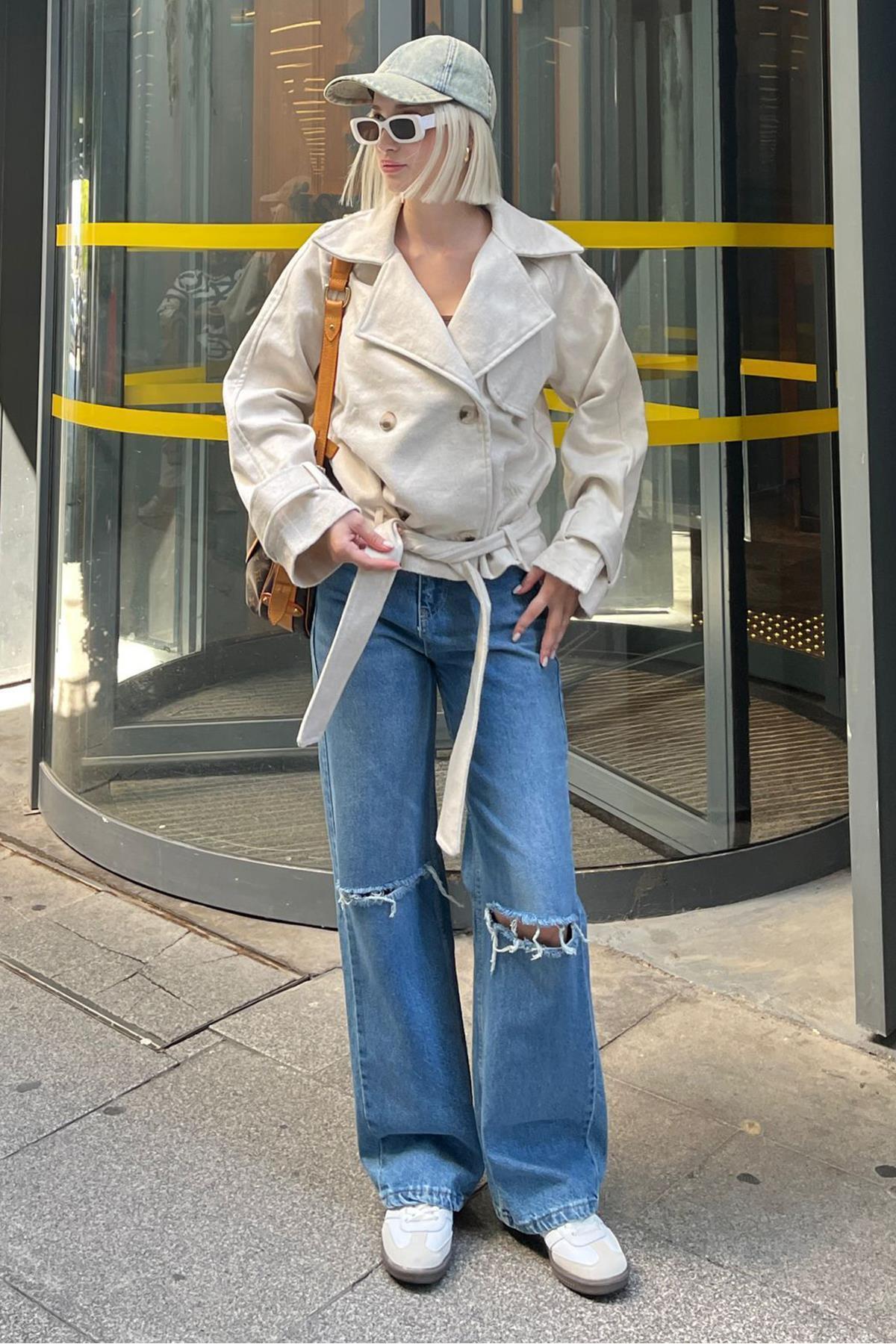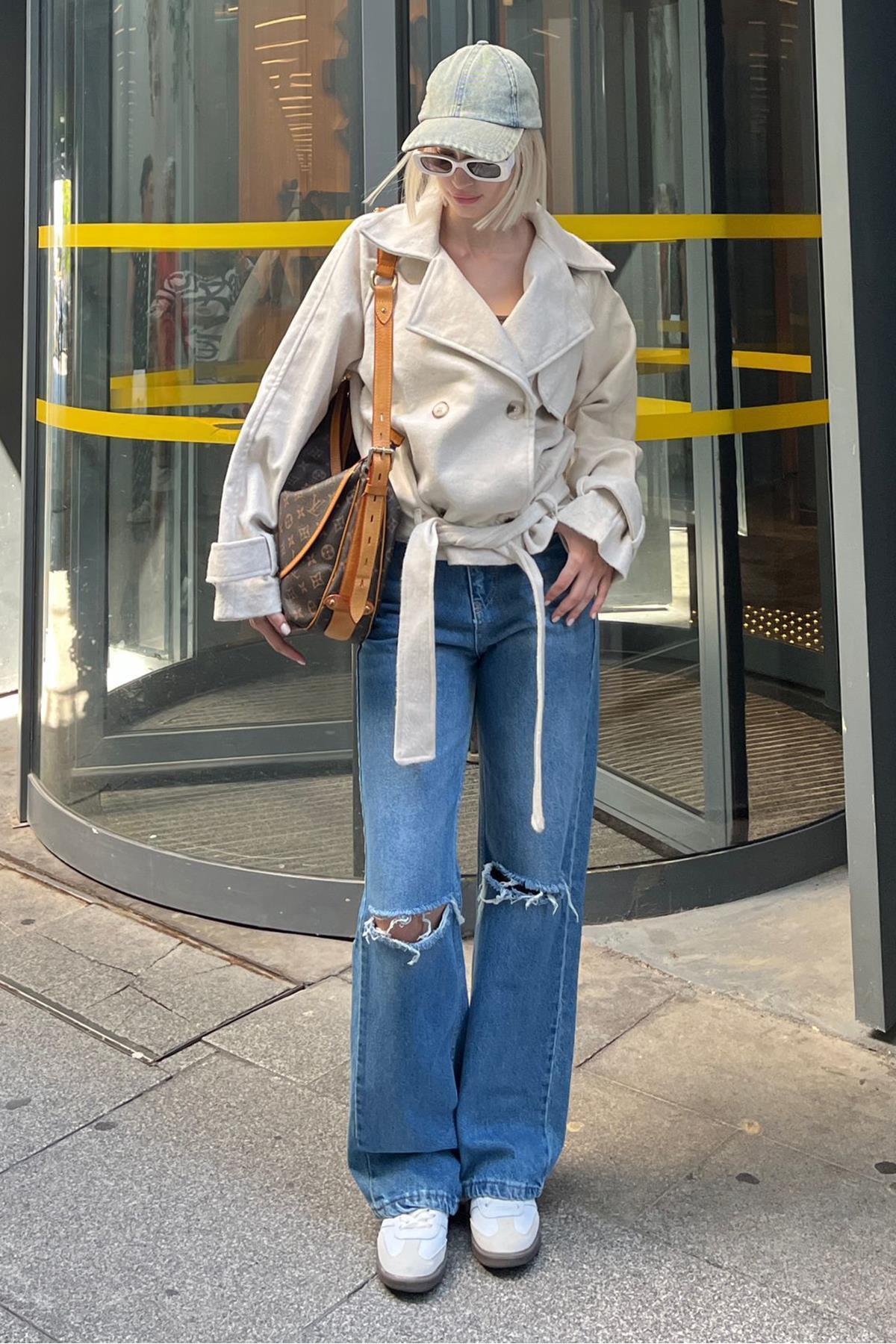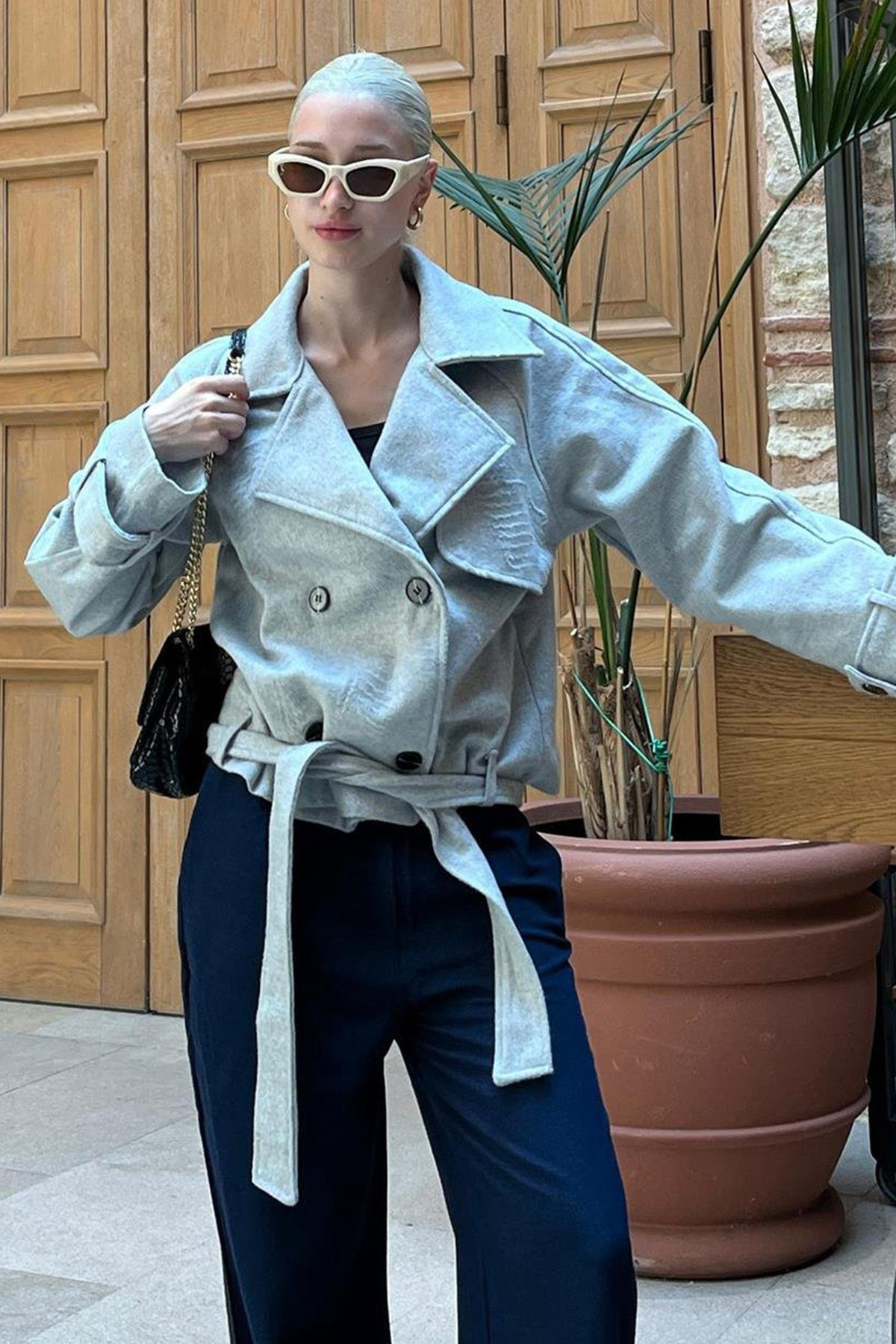 Ekru Düğmeli Kruvaze Yaka Kısa Kemerli Ceket MG2174 Ekru Düğmeli Kruvaze Yaka Kısa Kemerli Ceket MG2174 XL