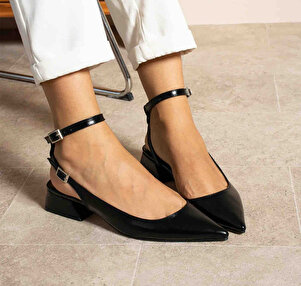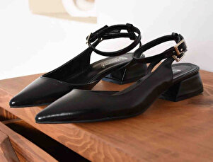 Kadın Siyah Bilek Bağlı Sivri Uçlu Tokalı Kemerli Topuklu Babet Kadın Siyah Bilek Bağlı Sivri Uçlu Tokalı Kemerli Topuklu Babet LILA 40