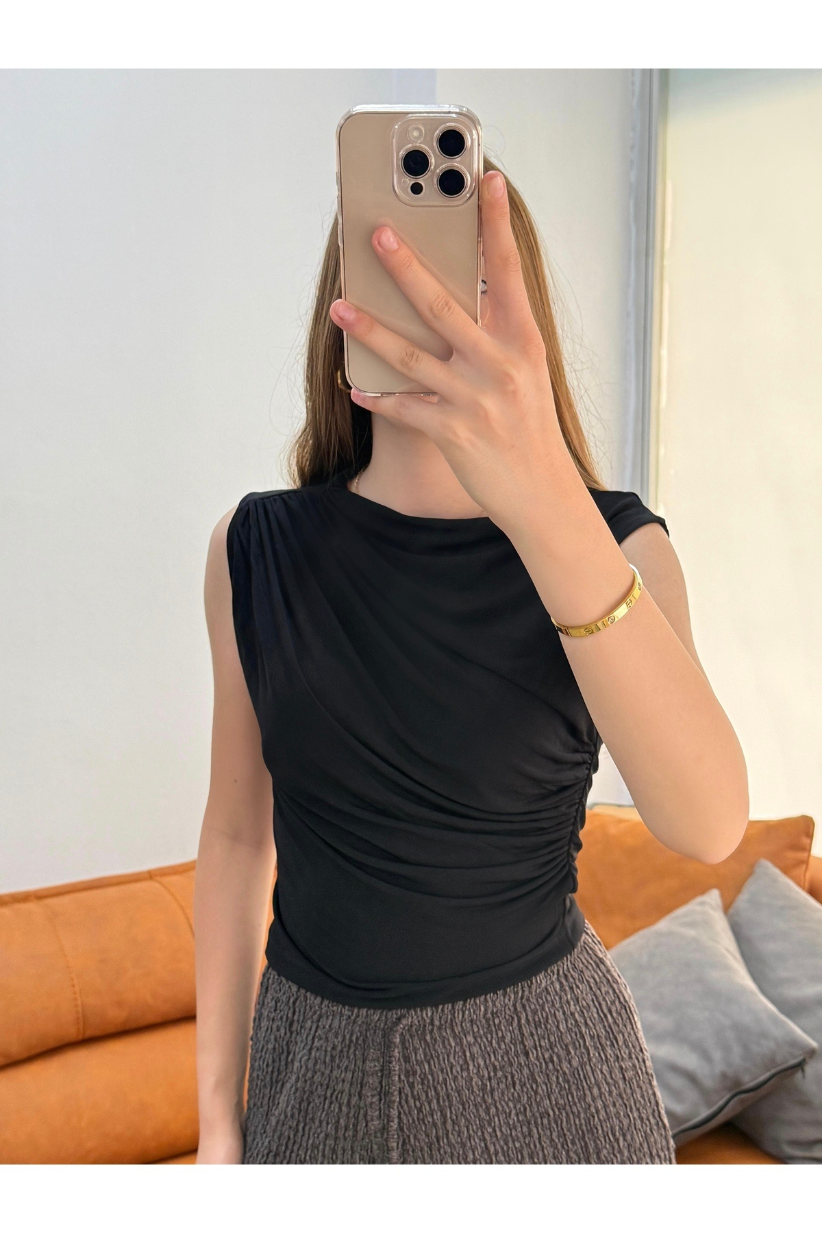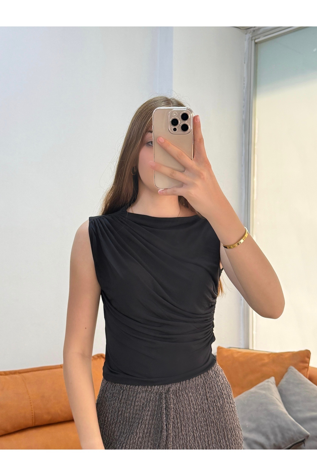 Kolsuz Kadın Büzgü Detaylı Sandy Bluz Kolsuz Kadın Büzgü Detaylı Sandy Bluz BLUZ126 2XL