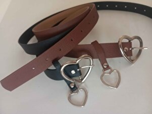 2'li Fırsat Ürünü Kalp Tokalı Basic Kadın Pantolon Kemeri, Ceket Kemeri, Elbise Kemeri, Gömlek Kemer 2'li Fırsat Ürünü Kalp Tokalı Basic Kadın Pantolon Kemeri, Ceket Kemeri, Elbise Kemeri, Gömlek Kemer FK1155 تک سایز