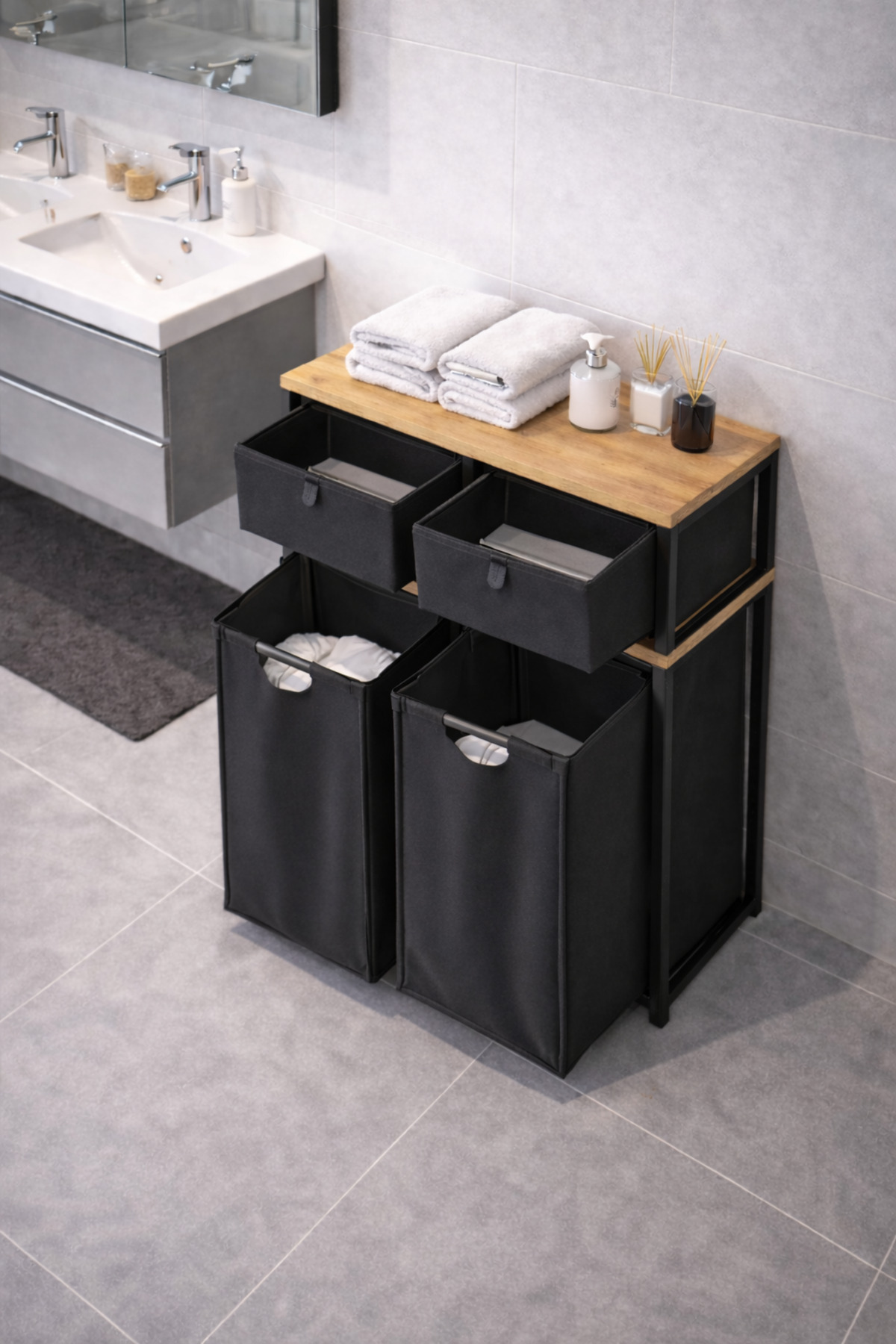 Çamaşır Sepeti Kirli Sepeti Ahşap Banyo Dolabı Büyük Boy Geniş 2 Bölmeli Kumaş Kirli Sepeti Çamaşır Sepeti Kirli Sepeti Ahşap Banyo Dolabı Büyük Boy Geniş 2 Bölmeli Kumaş Kirli Sepeti T02 تک سایز
