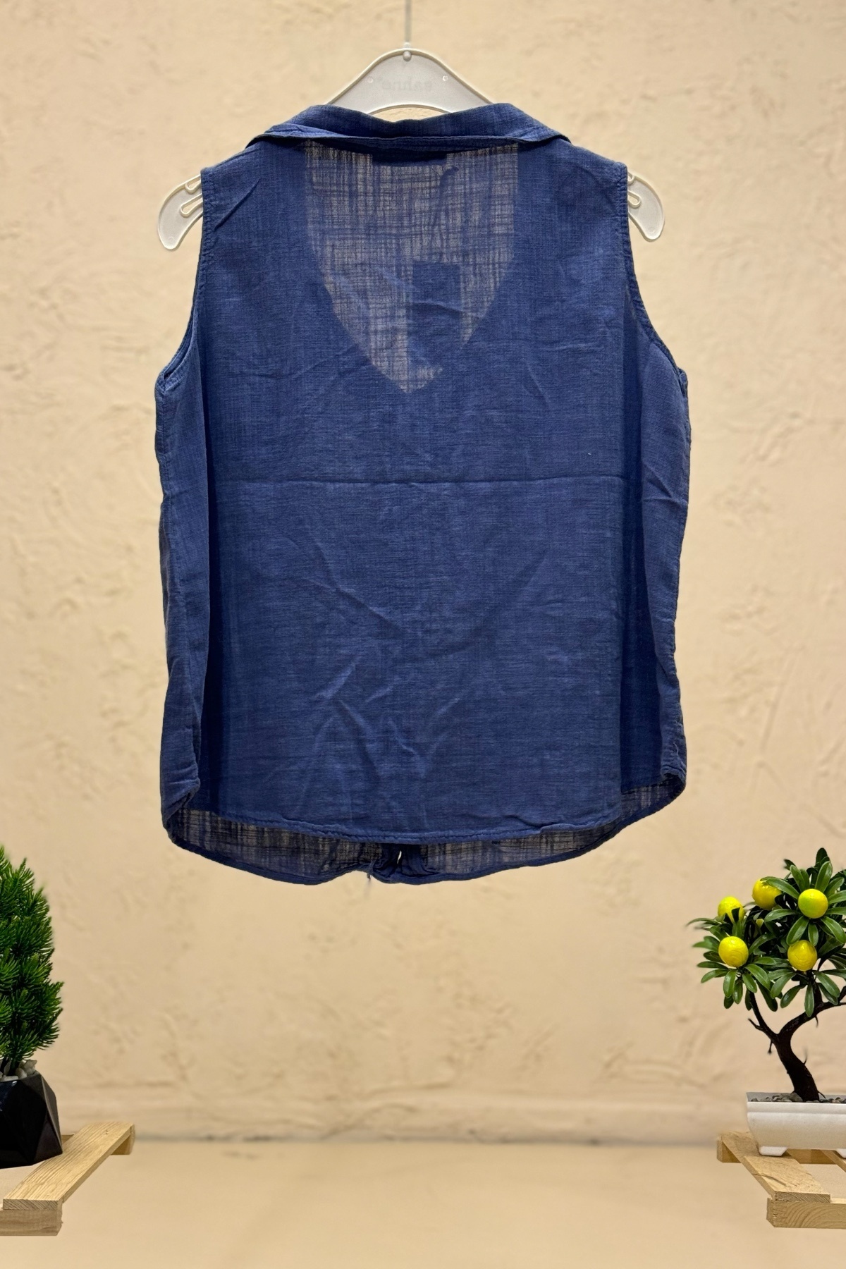 Yakallı Cepli Tahta Düğmeli Keten Yelek Yakallı Cepli Tahta Düğmeli Keten Yelek 231013 L/XL