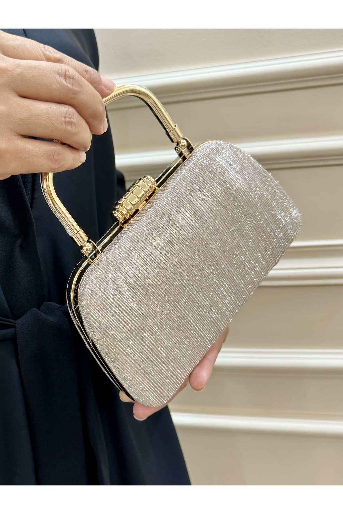 Kadın Gold Simli Tutma Detaylı Abiye Çantası Özel Gün Çantası Kadın Gold Simli Tutma Detaylı Abiye Çantası Özel Gün Çantası tm11117simli تک سایز