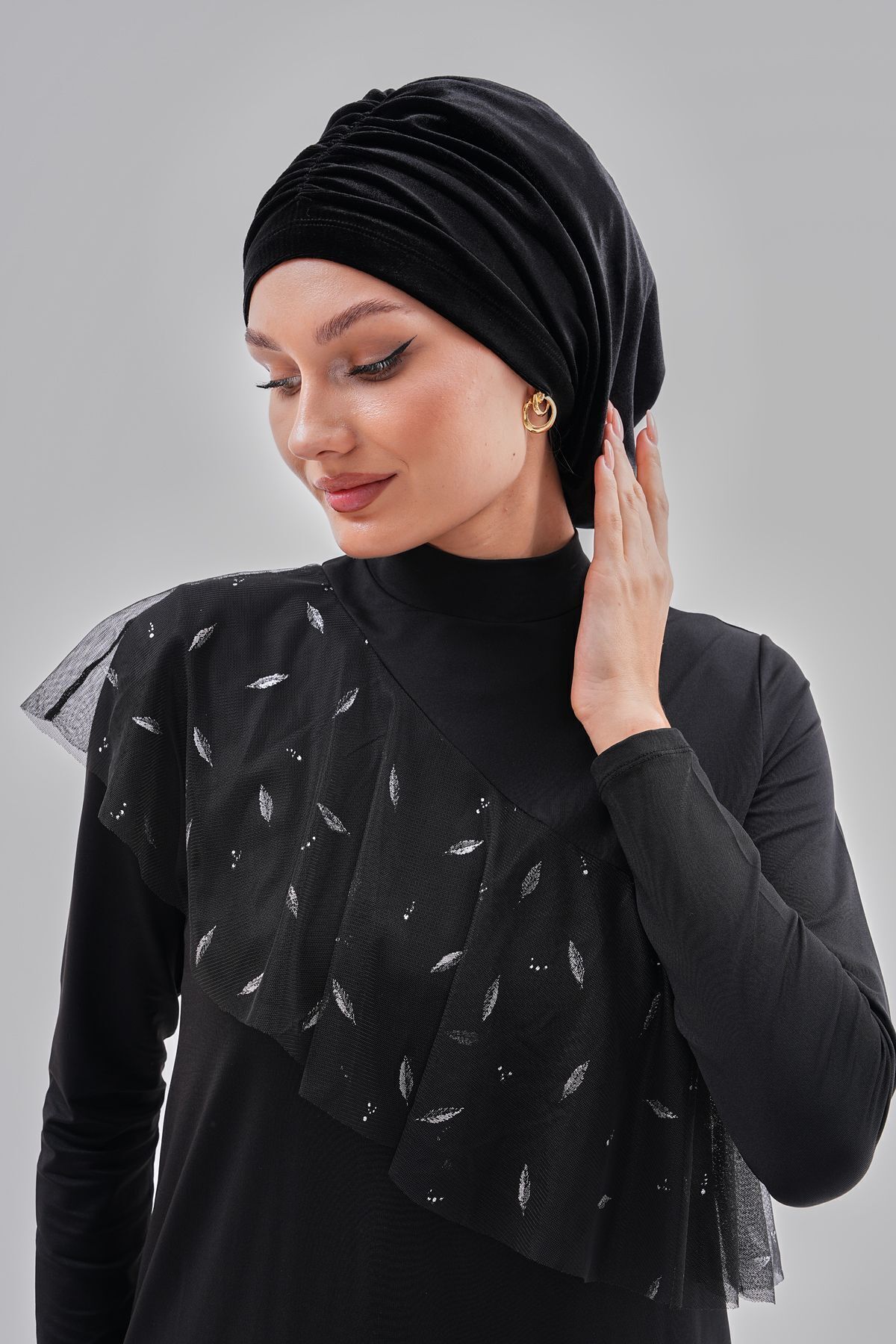 Kışlık Kadife Siyah Tesettür Bone Lastikli Büzgü Detaylı Bone Spor Bone Pratik Şal Eşarp Kışlık Kadife Siyah Tesettür Bone Lastikli Büzgü Detaylı Bone Spor Bone Pratik Şal Eşarp BKL2024-2 Standart