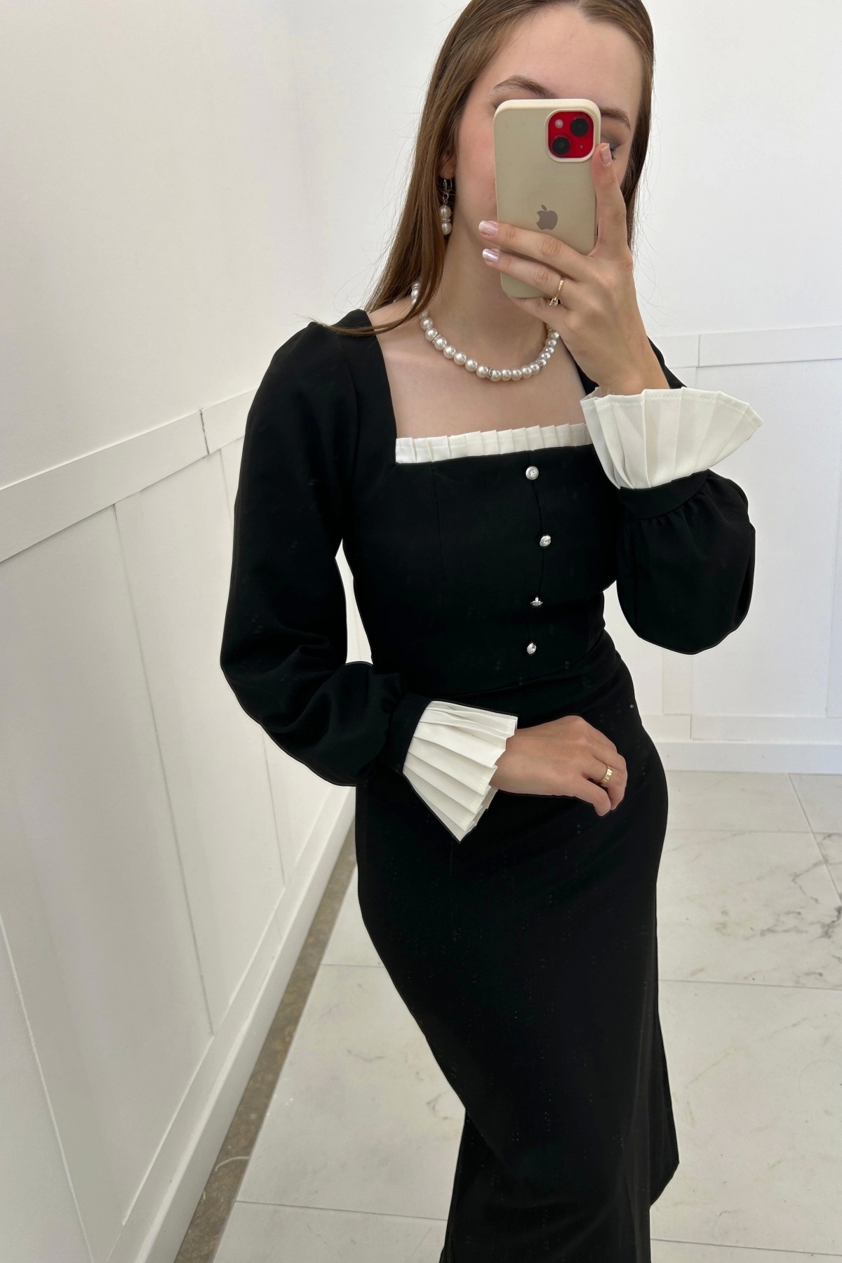Loya Kol ve Göğüs Detaylı Vintage Elbise Loya Kol ve Göğüs Detaylı Vintage Elbise 00442 L