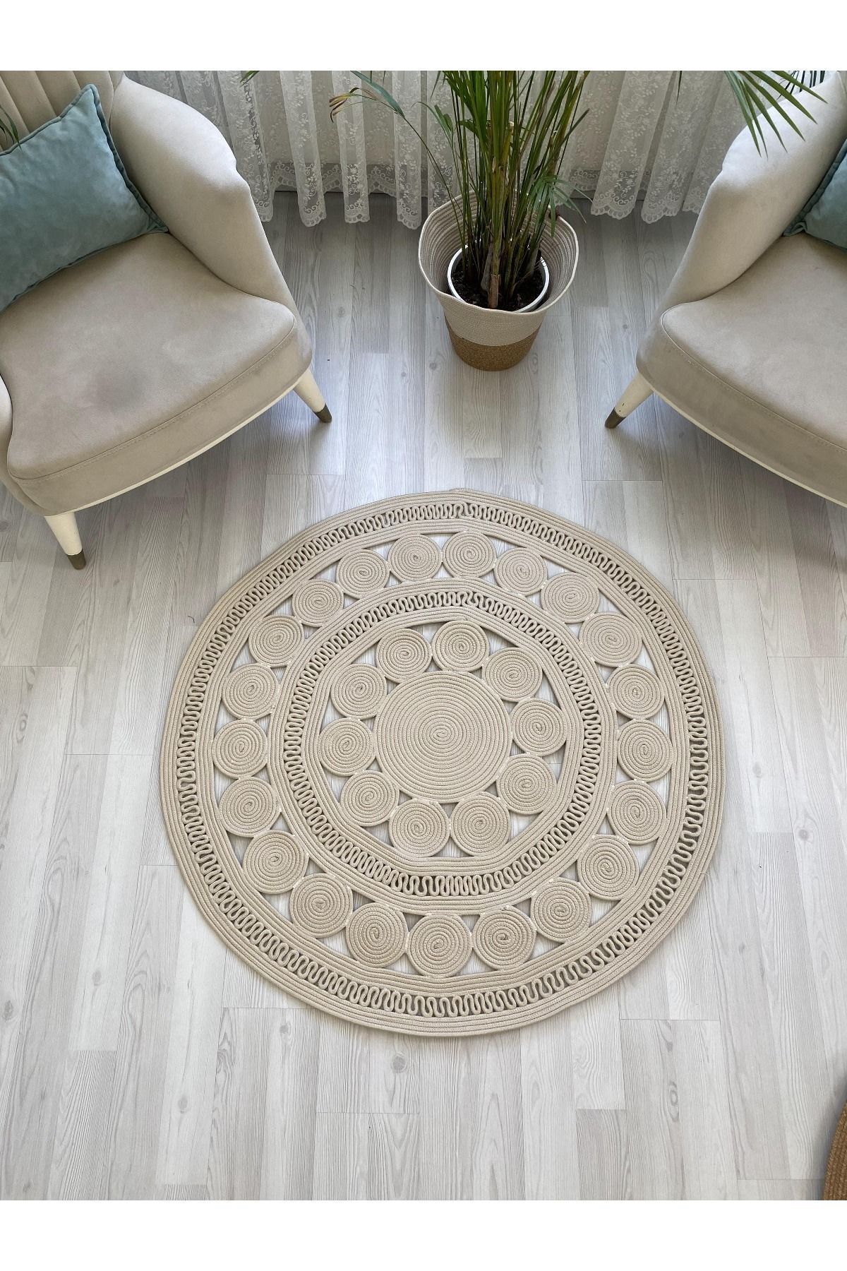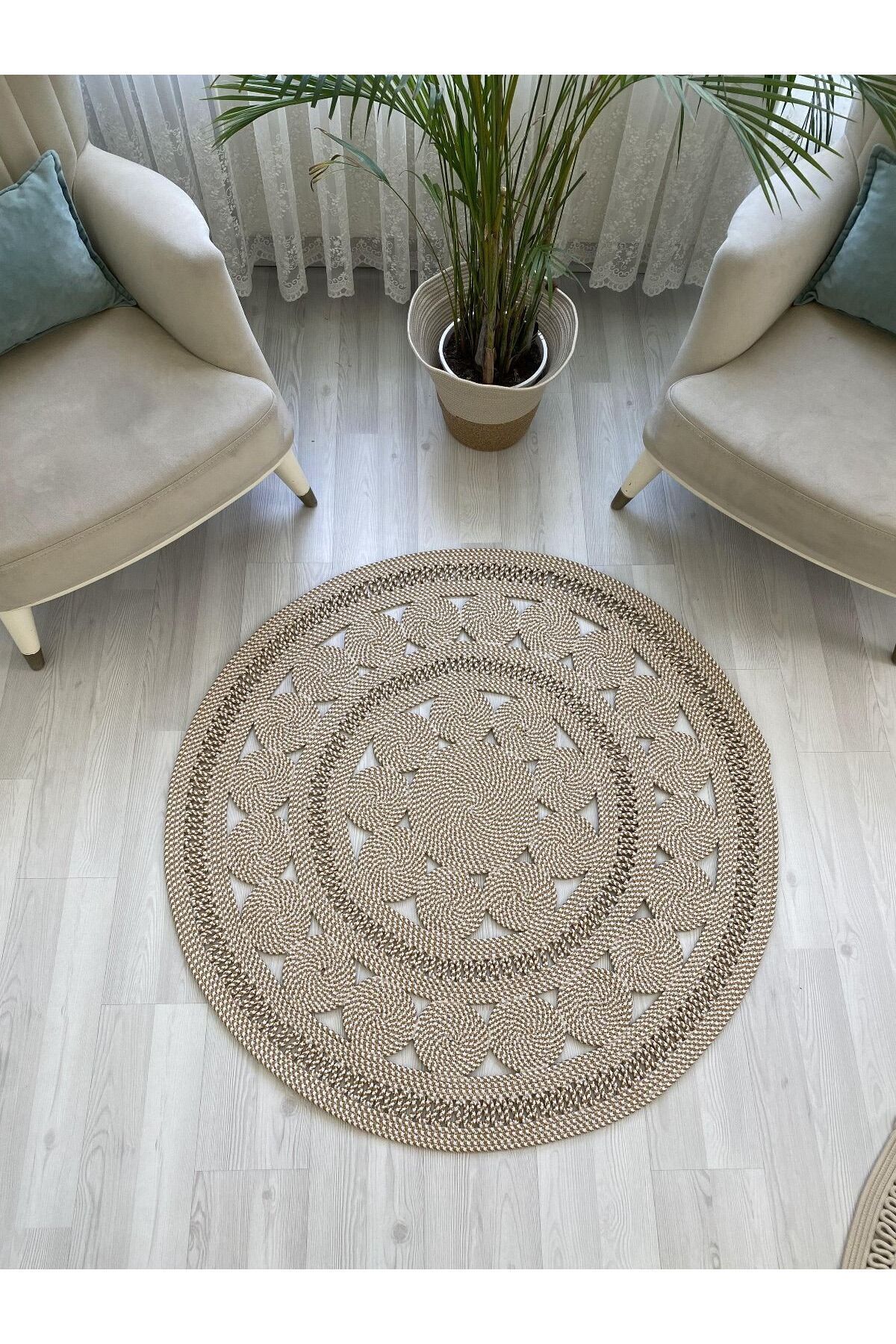 jüt Hasır görünümlü Desenli Modern El Örgüsü daire Halı Kilim jüt Hasır görünümlü Desenli Modern El Örgüsü daire Halı Kilim JH7340 100 x 100
