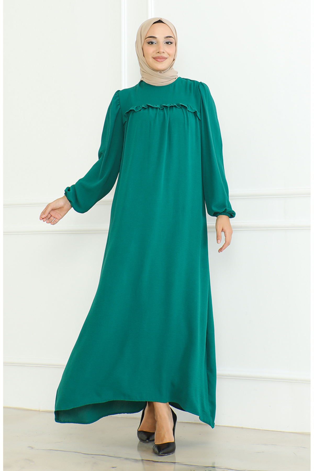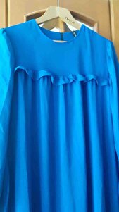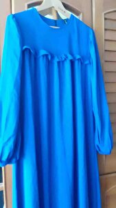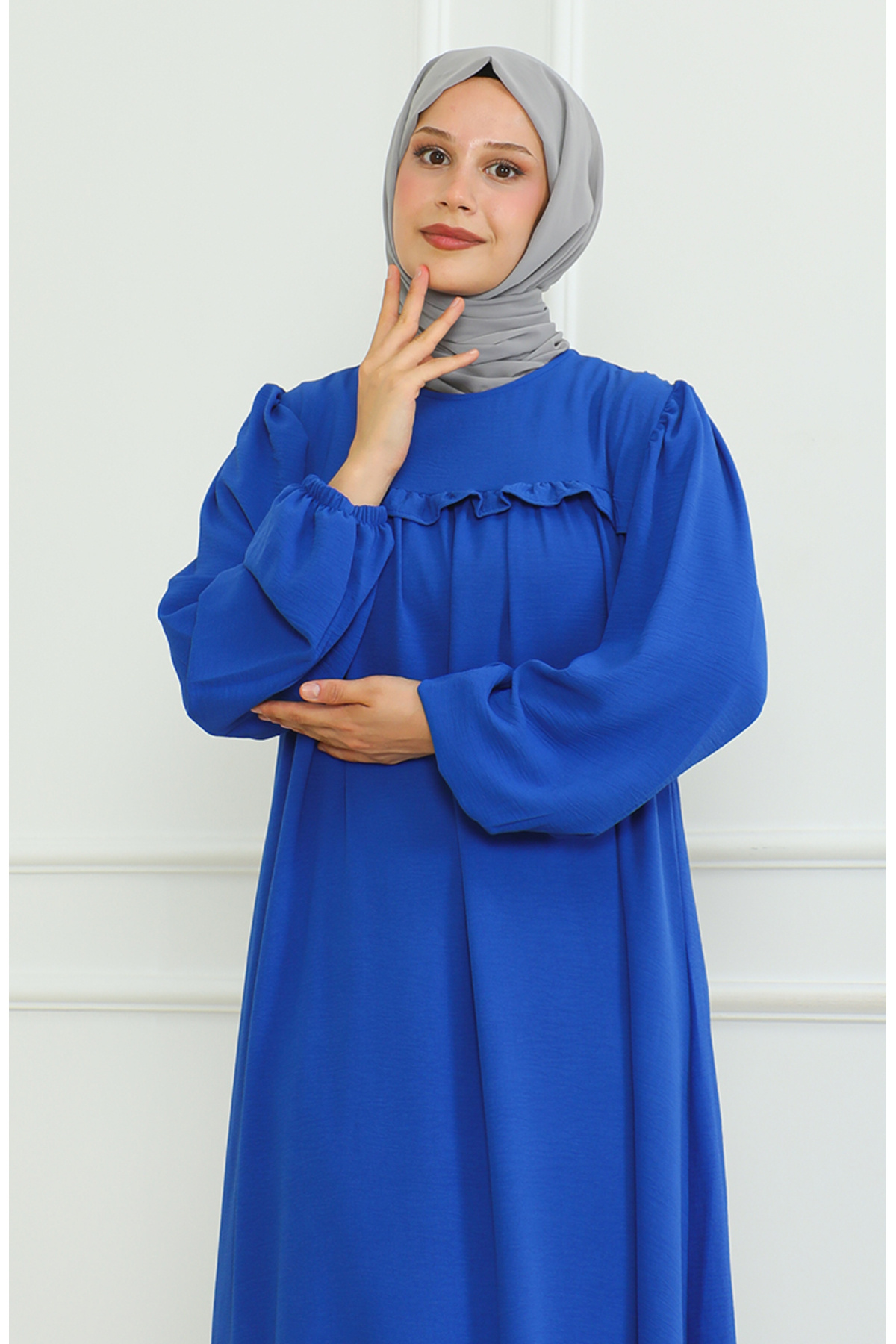 Aerobin Kumaş Kolu Lastikli Elbise 0465-02 Saks Aerobin Kumaş Kolu Lastikli Elbise 0465-02 Saks NAZRA0465-02 50-52