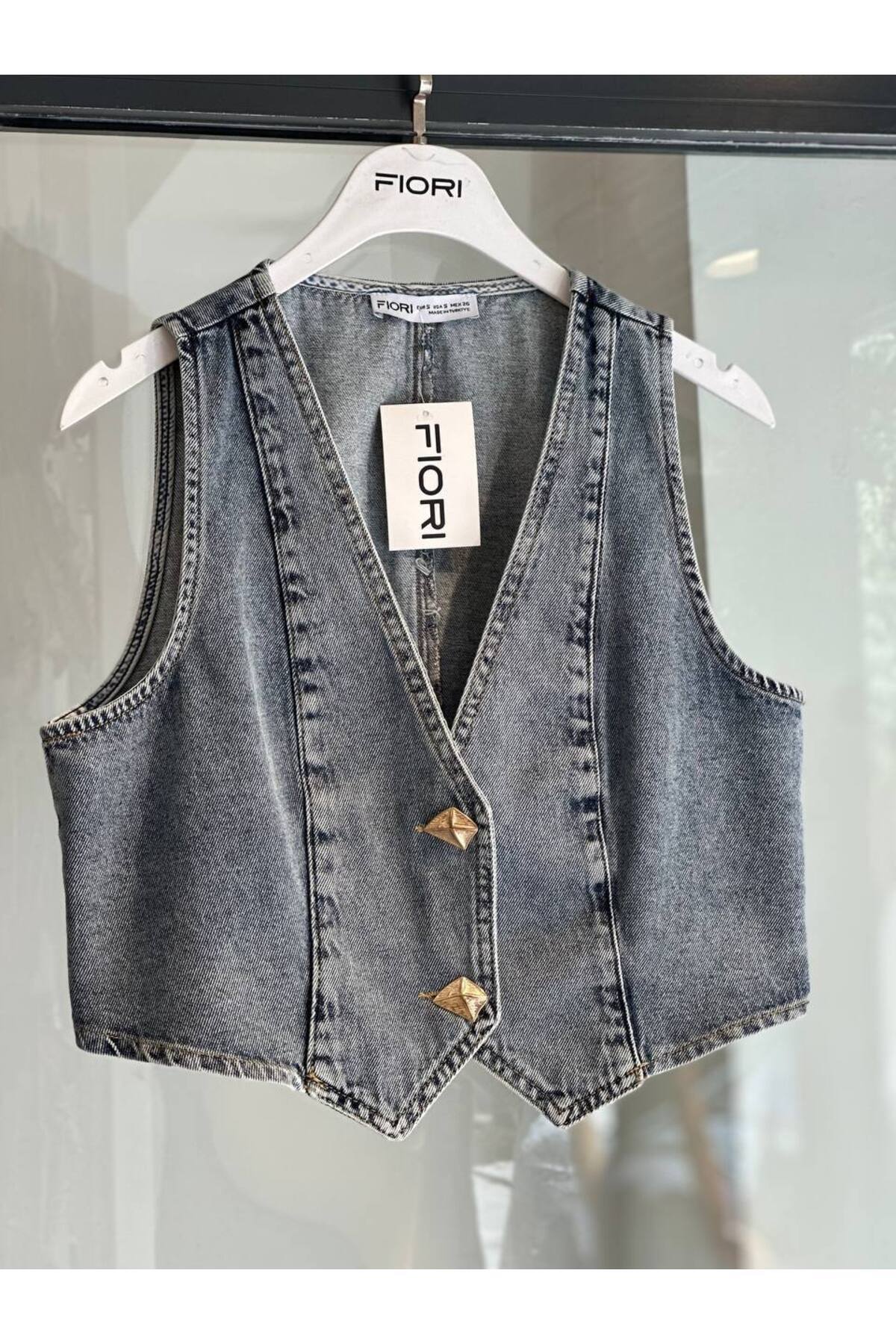 Kadın Mavi Düğmeli Jean Yelek ALC-X12680 Kadın Mavi Düğmeli Jean Yelek ALC-X12680 L