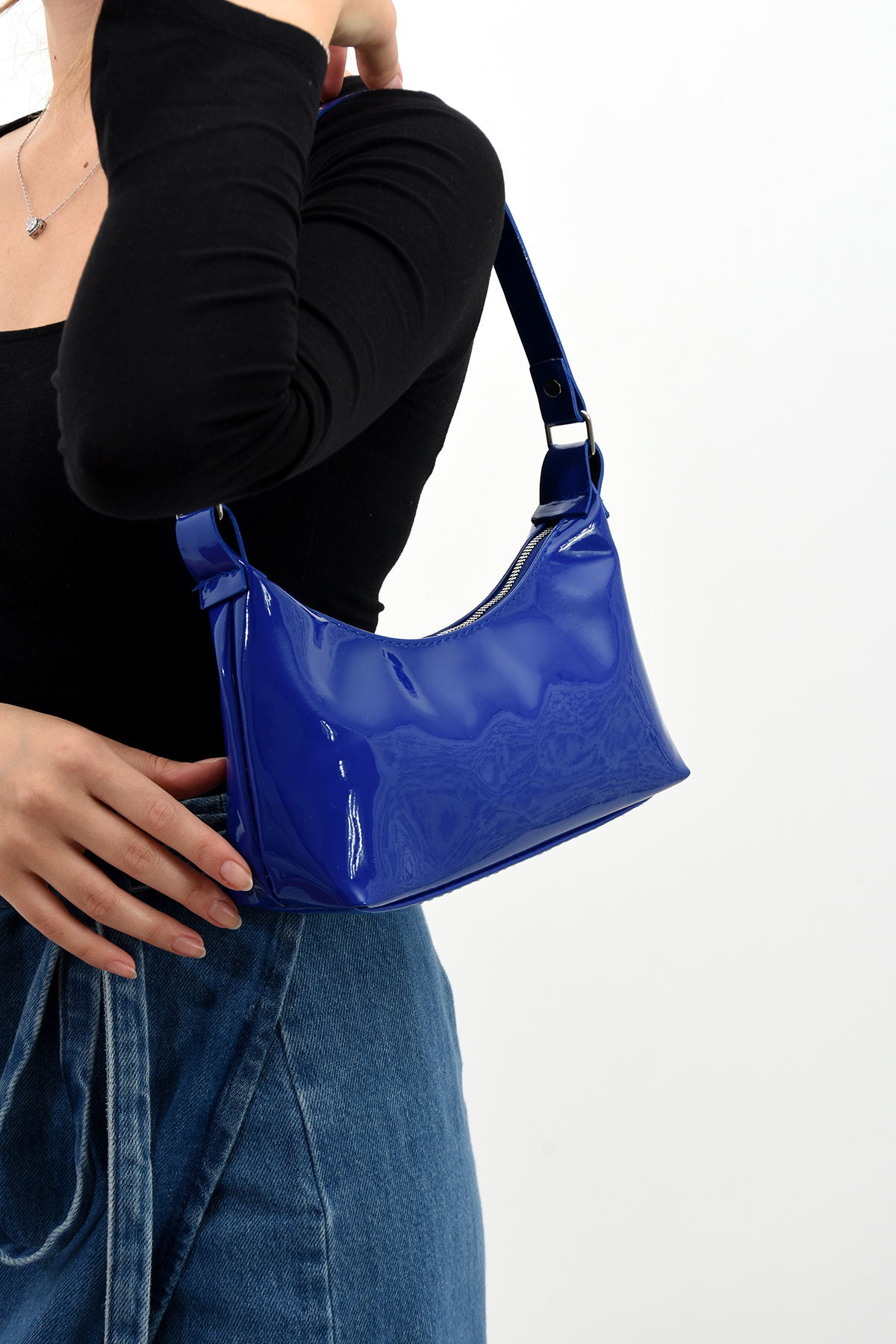 Kadın çimen Rugan Omuz Çantası Kadın çimen Rugan Omuz Çantası MODAELFRGN تک سایز