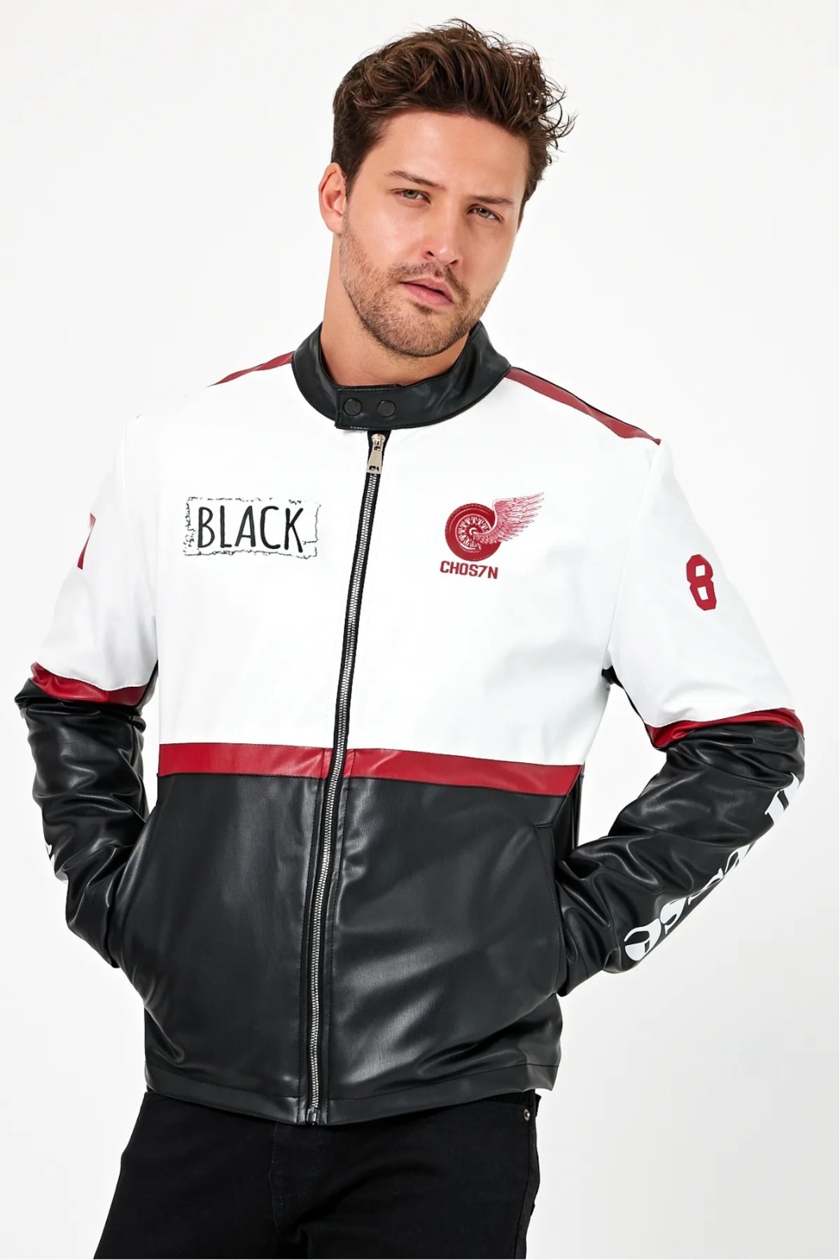 Erkek Oversize Motorcu Mont Şeritli Garnili Kolej Mont Yarışçı Erkek Ceket Erkek Oversize Motorcu Mont Şeritli Garnili Kolej Mont Yarışçı Erkek Ceket RAW-ERK XL