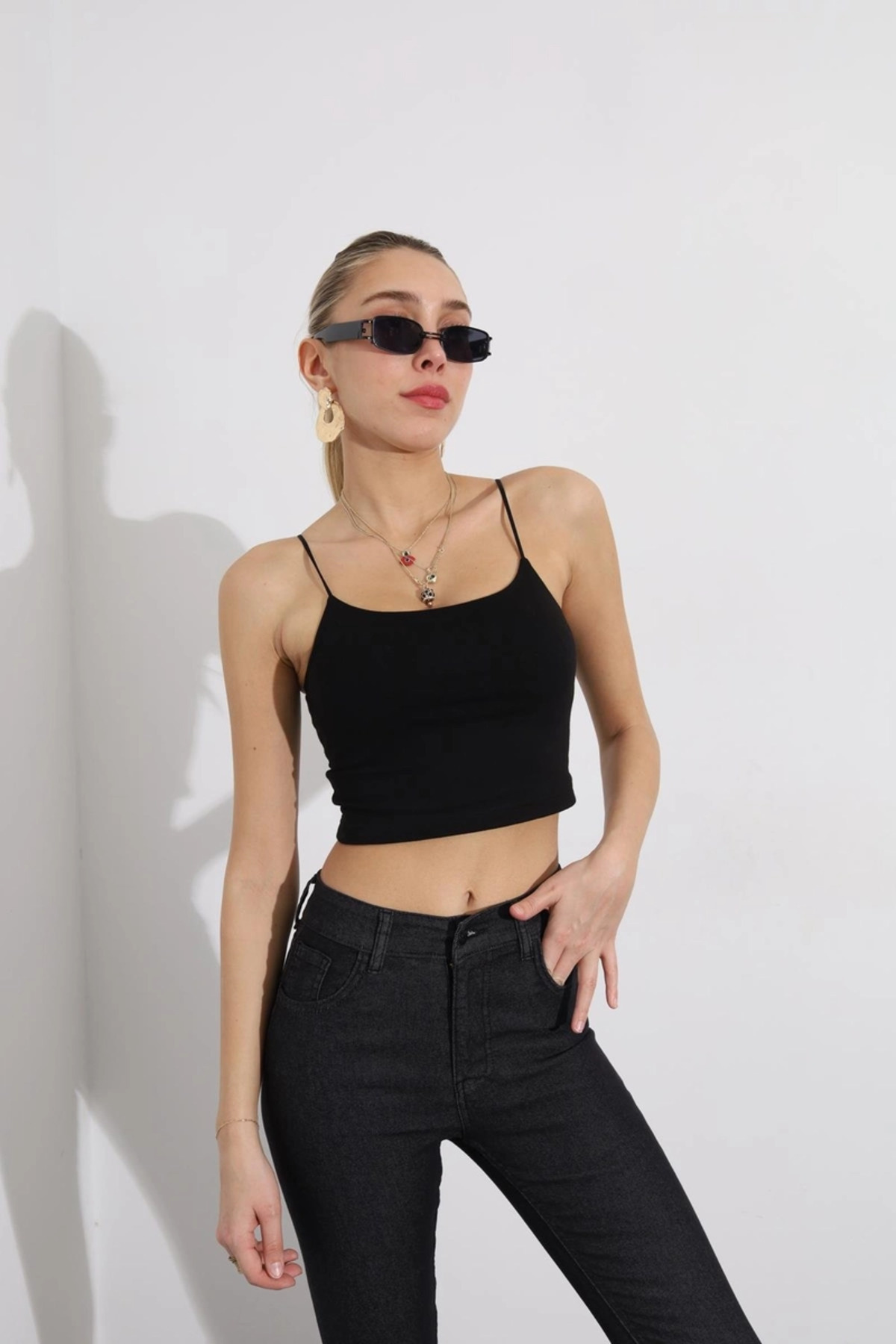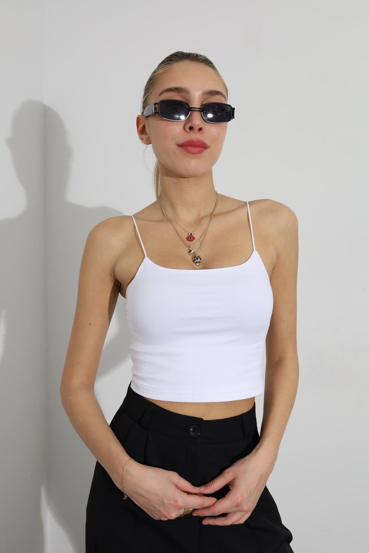 Siyah ve Beyaz İkili Set İp Askılı Crop Top Astarlı Büstiyer Bluz Siyah ve Beyaz İkili Set İp Askılı Crop Top Astarlı Büstiyer Bluz ANIT2205 L