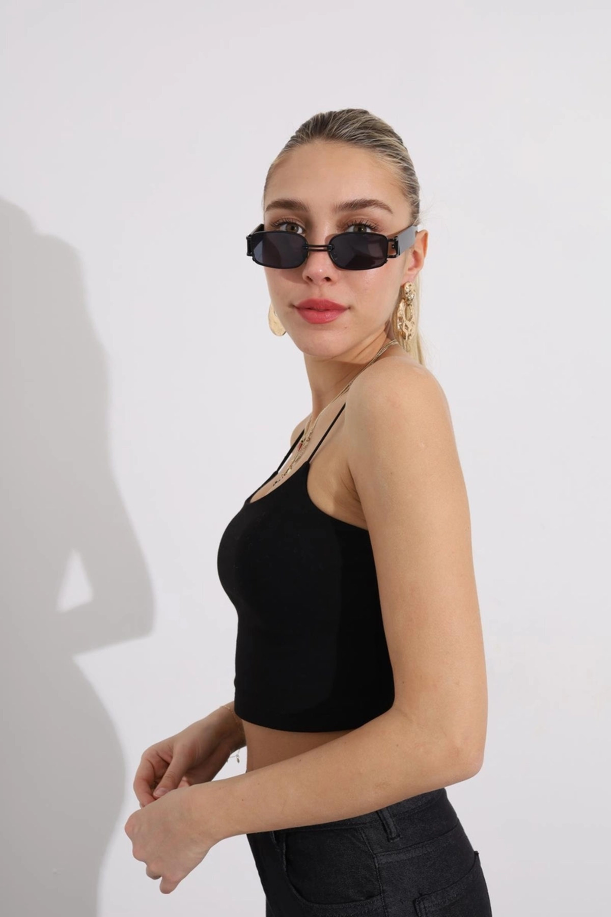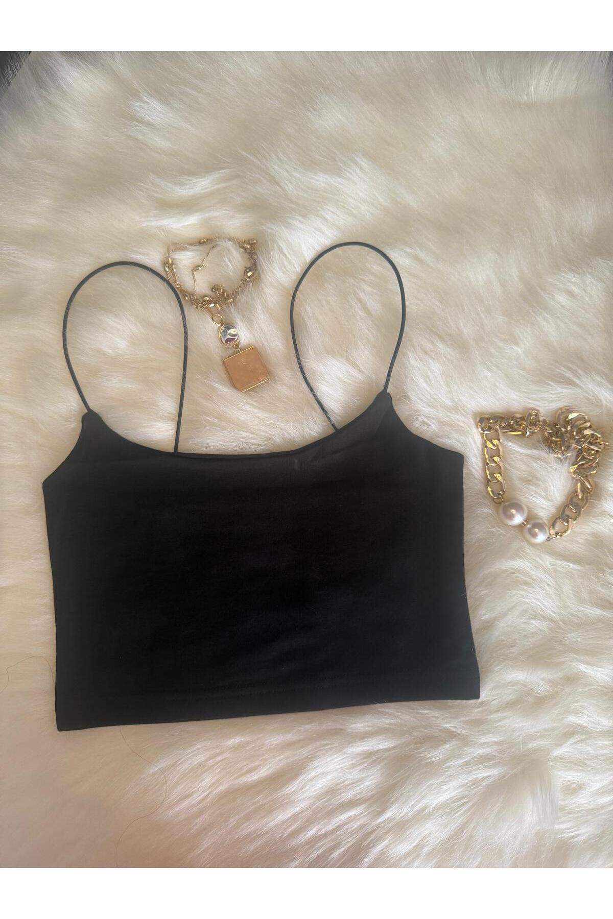 Siyah Ip Askılı Crop Top Astarlı Büstiyer Bluz Siyah Ip Askılı Crop Top Astarlı Büstiyer Bluz ANIT2205 L