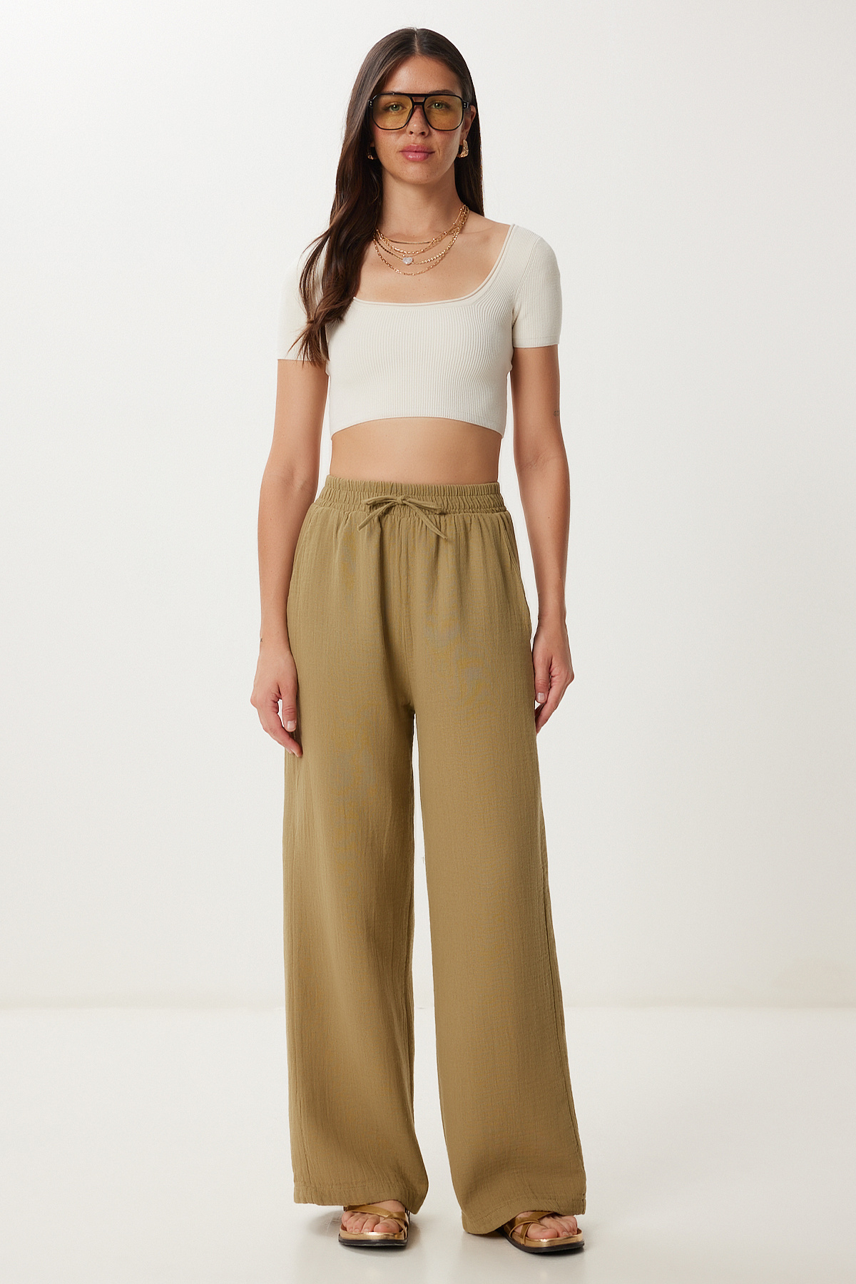 Kadın Bisküvi Müslin Palazzo Pantolon MX00160 Kadın Bisküvi Müslin Palazzo Pantolon MX00160 42