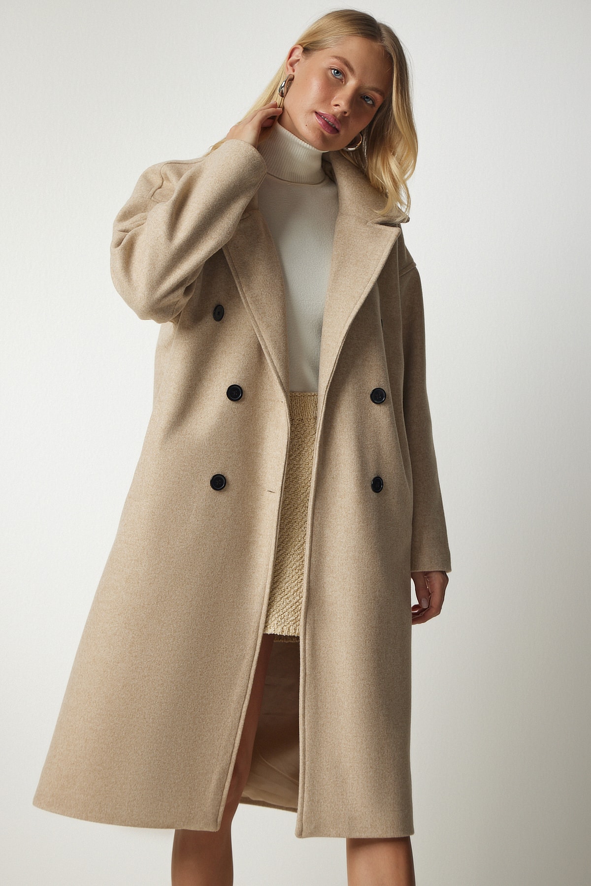 Kadın Bisküvi Kruvaze Yaka Kaşe Kaban DD01337 Kadın Bisküvi Kruvaze Yaka Kaşe Kaban DD01337 42