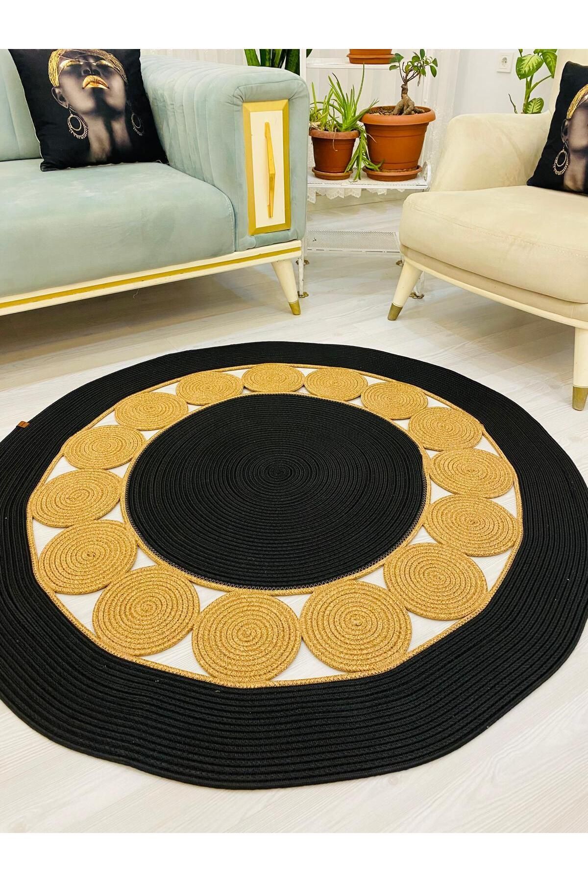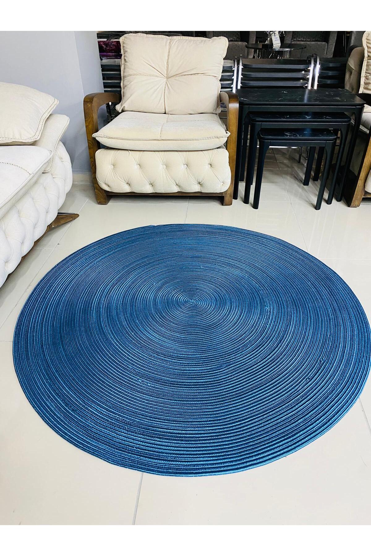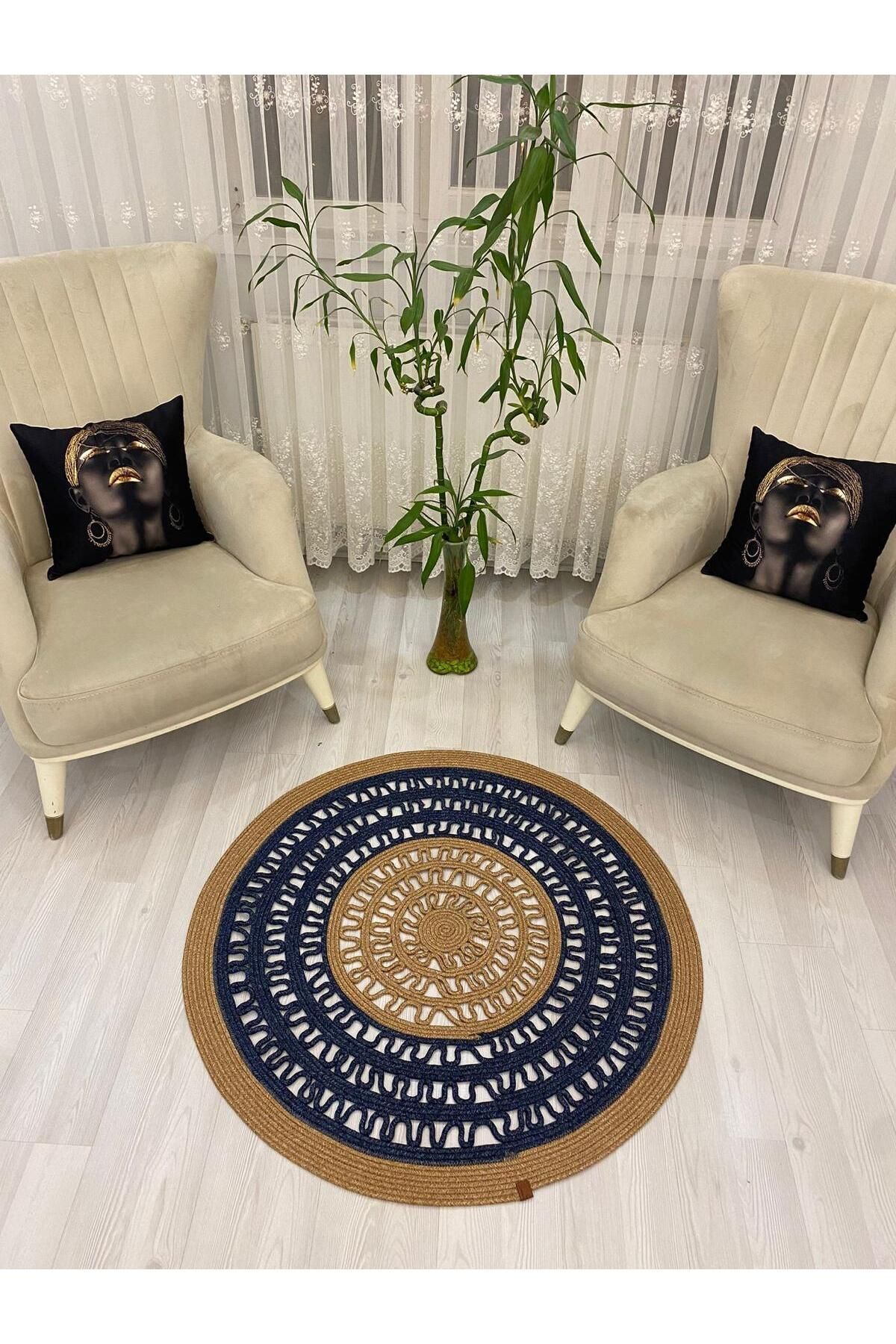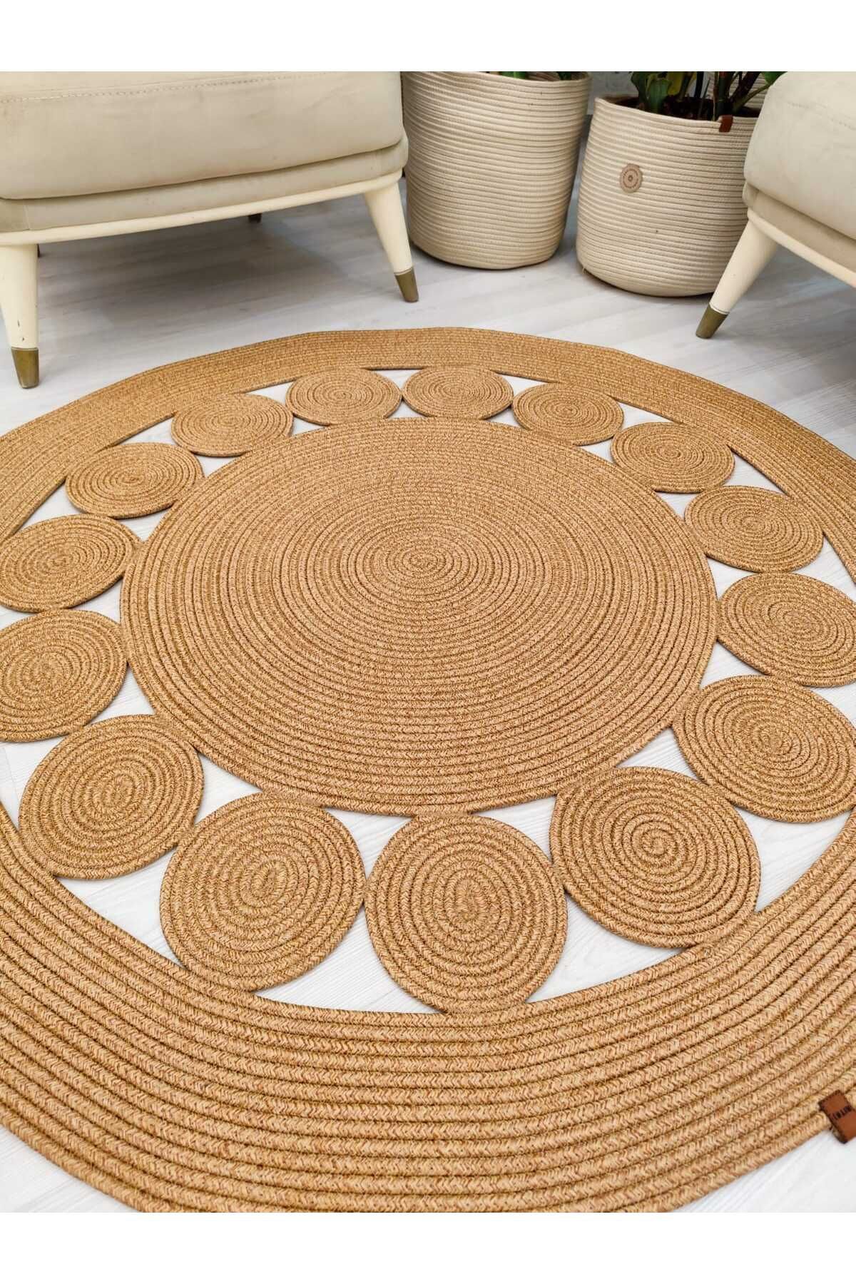 Jüt Hasır Görünümlü Desenli Modern El Örgüsü Daire Halı Kilim Jüt Hasır Görünümlü Desenli Modern El Örgüsü Daire Halı Kilim JH7320 100 x 100