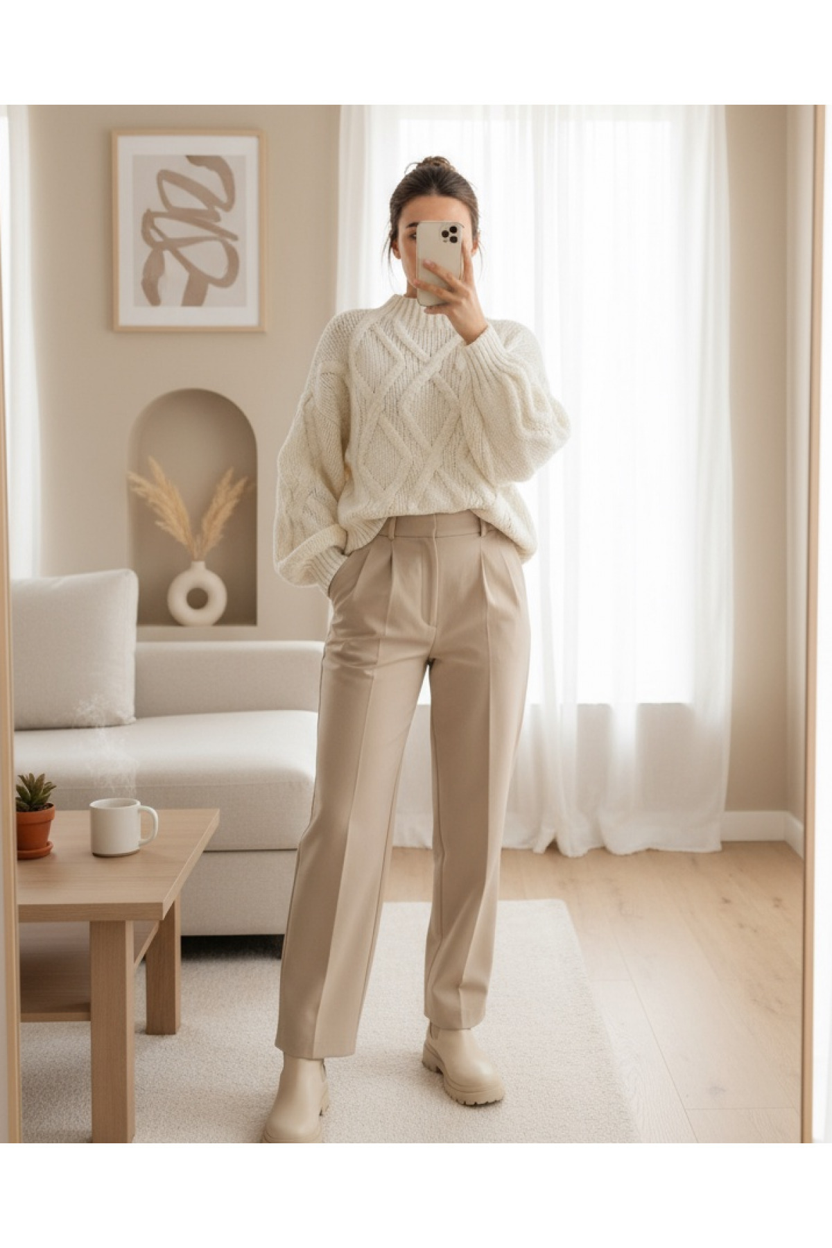 Çiçek Nakışlı Ponpon Örgülü Triko Kazak -Ekru Çiçek Nakışlı Ponpon Örgülü Triko Kazak -Ekru TY109-0764 Standart