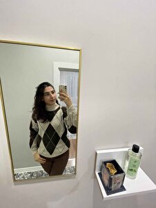 Kadın Baklava Desenli Dik Yaka Triko Kazak Kadın Baklava Desenli Dik Yaka Triko Kazak fmoda6100 L