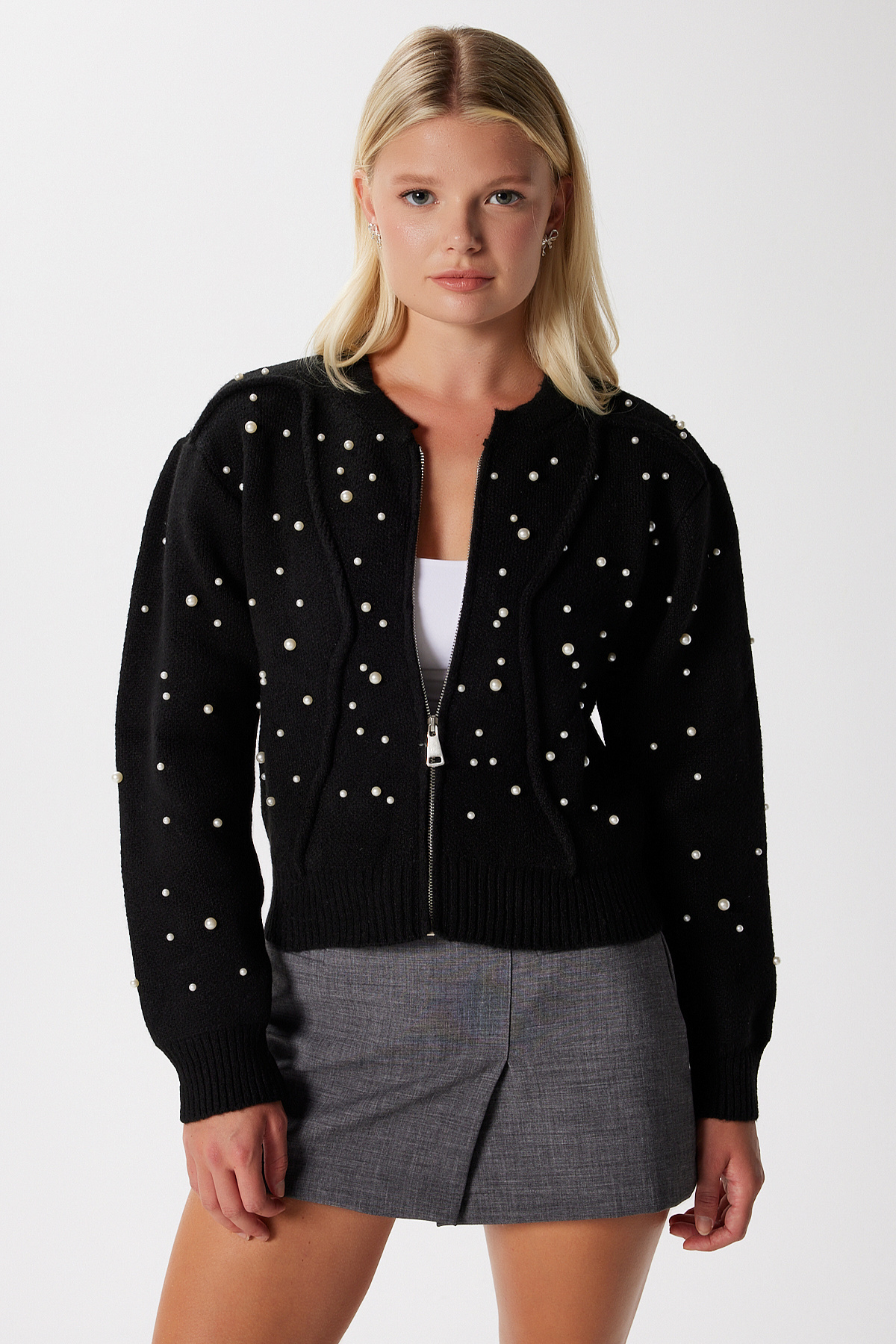 Kadın Siyah Incili Fermuarlı Hırka Kadın Siyah Incili Fermuarlı Hırka incilihırka Standart