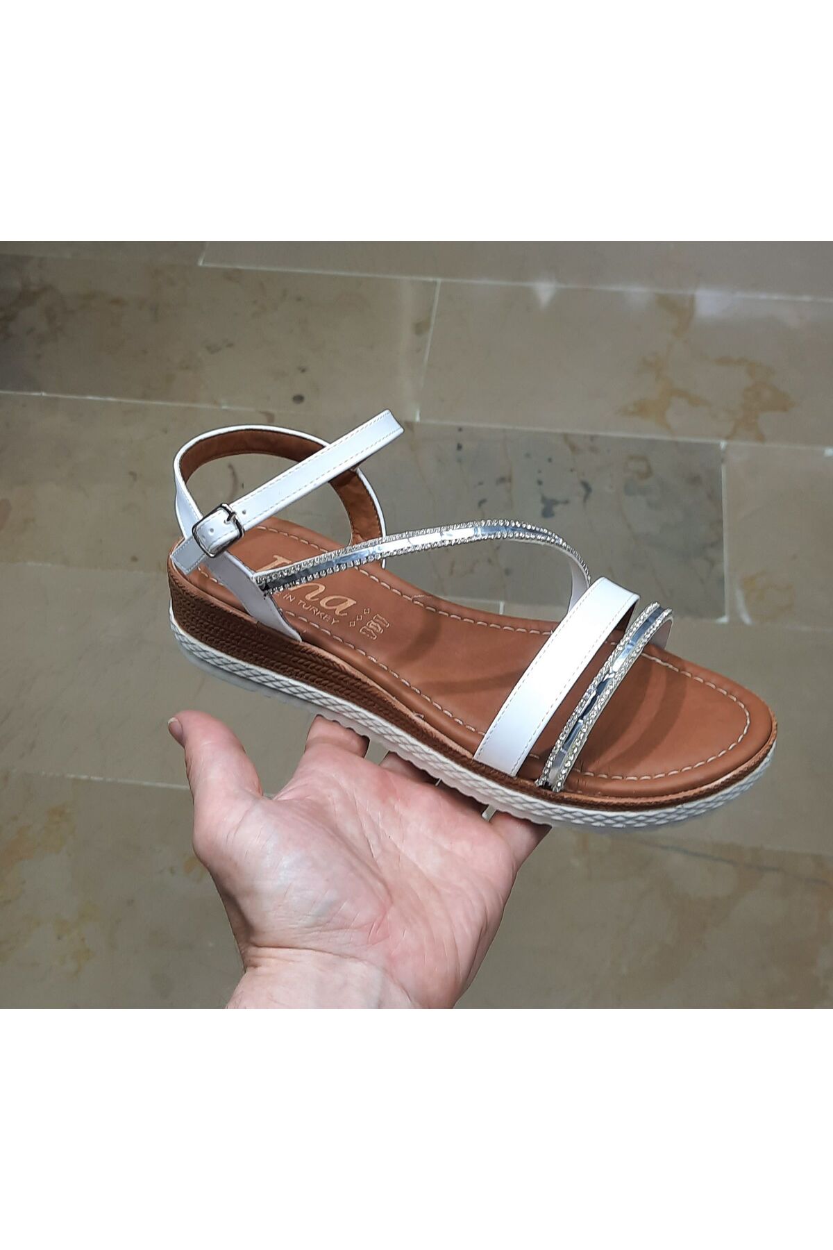 Kadın Bej Taşlı Tokalı Sandalet Kadın Bej Taşlı Tokalı Sandalet ZS1501 40