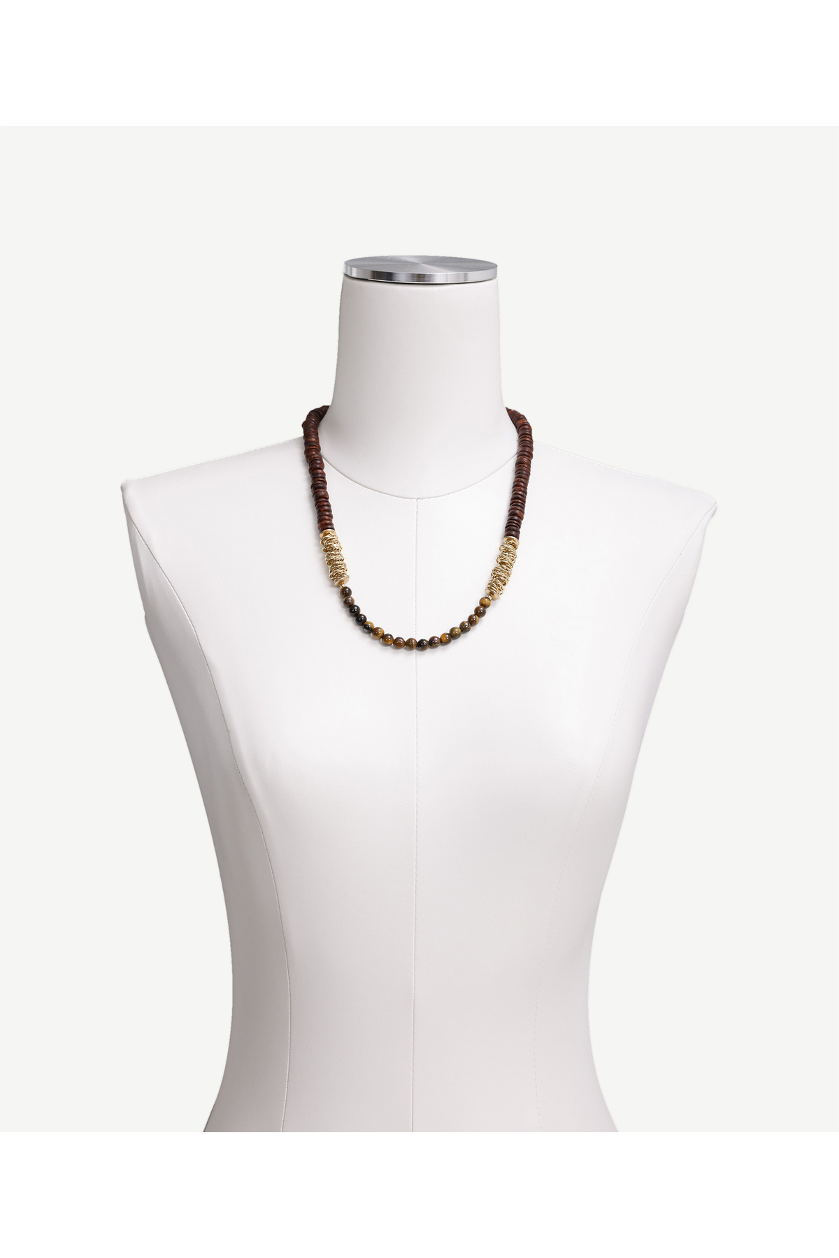 Doğal Taş Ve Ahşap Sıralı Kolye Doğal Taş Ve Ahşap Sıralı Kolye 24KKBJ8110 تک سایز