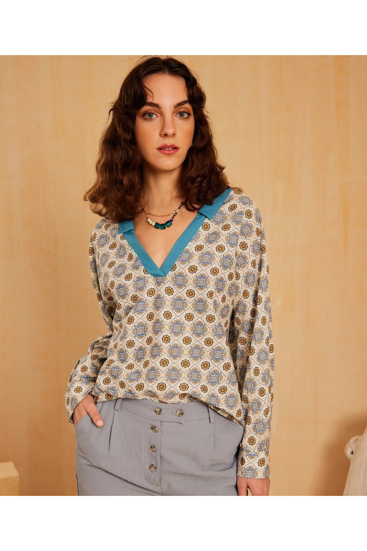 - نوع یقه : یقه پیراهن