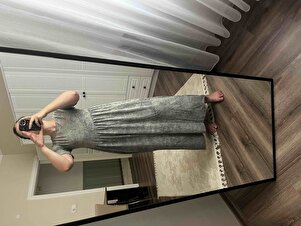 Kadın Asit Yıkama Efektli Cupra Kısa Kollu Büzgülü Örme Maxi Elbise Kadın Asit Yıkama Efektli Cupra Kısa Kollu Büzgülü Örme Maxi Elbise ESP-E2188 XL