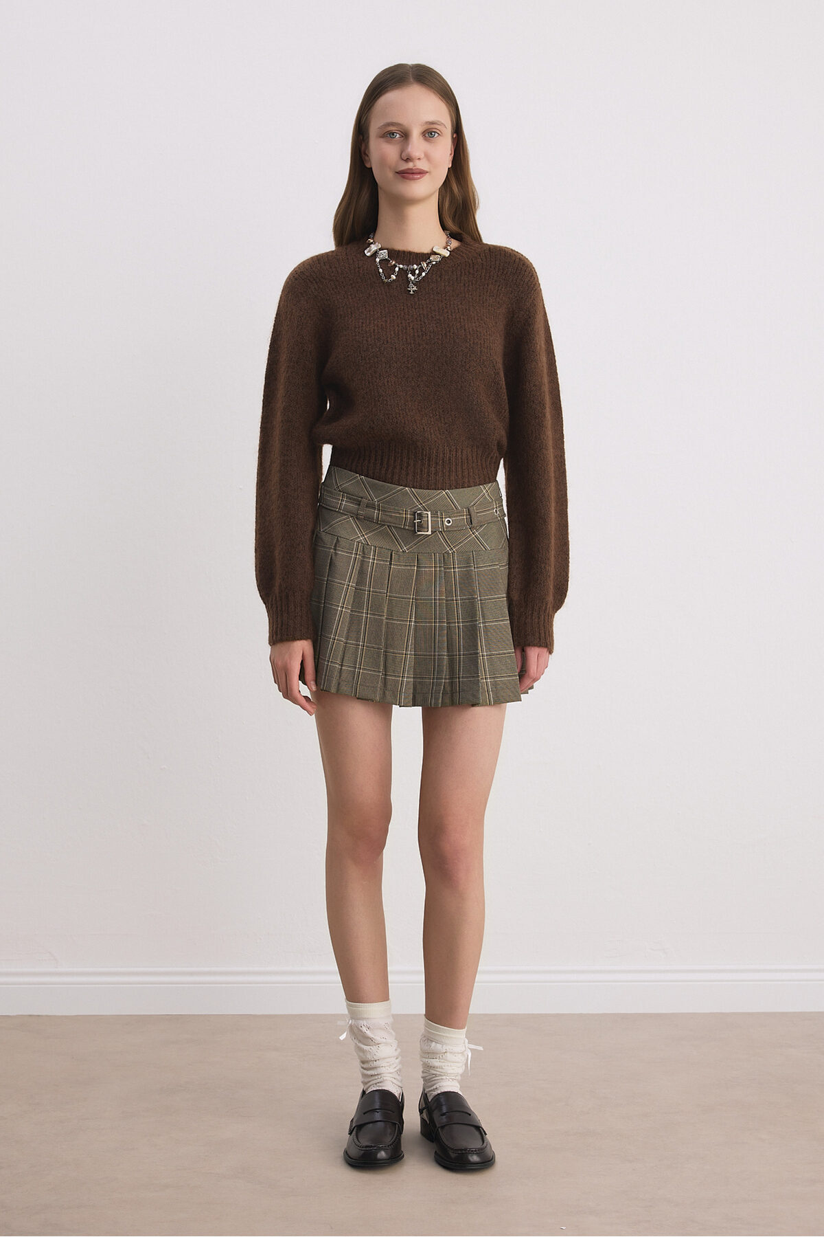 Kemerli Pileli Mini Etek GRİ Kemerli Pileli Mini Etek GRİ IKLM-6024K25 XL