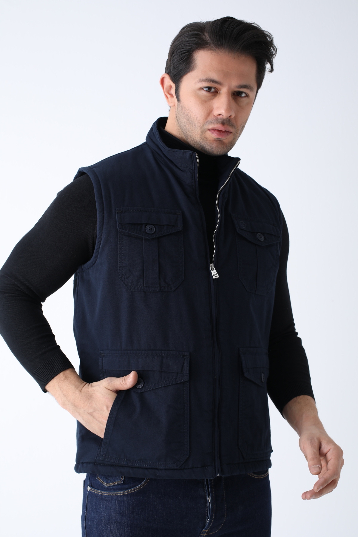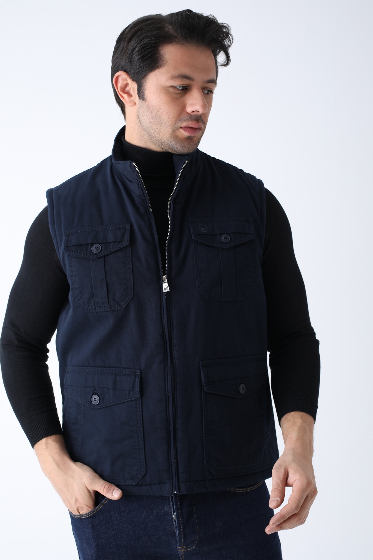 Erkek Kışlık Yelek Lacivert Pamuklu Kapitoneli Dört Cepli Erkek Kışlık Yelek Lacivert Pamuklu Kapitoneli Dört Cepli 2495 10-1001 2XL