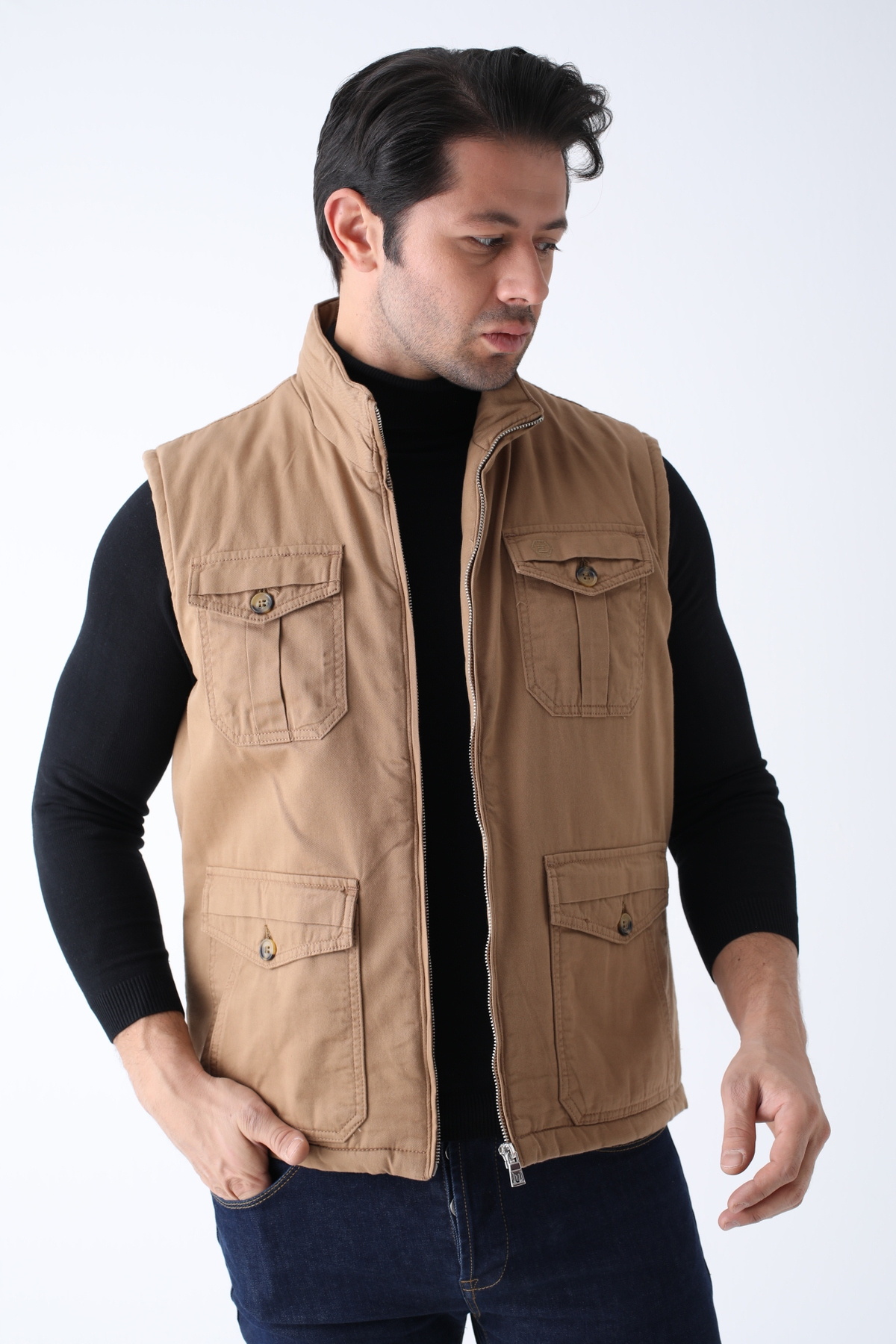 Erkek Kışlık Yelek Bej Pamuklu Kapitoneli Dört Cepli Erkek Kışlık Yelek Bej Pamuklu Kapitoneli Dört Cepli 2495 10-1001 2XL