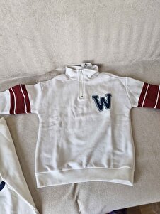 Sweatshirt Baskı Detaylı Yarım Fermuarlı Dik Yaka Uzun Kollu Pamuklu Şardonlu Sweatshirt Baskı Detaylı Yarım Fermuarlı Dik Yaka Uzun Kollu Pamuklu Şardonlu 5WKB10191TK 13-14 Yaş