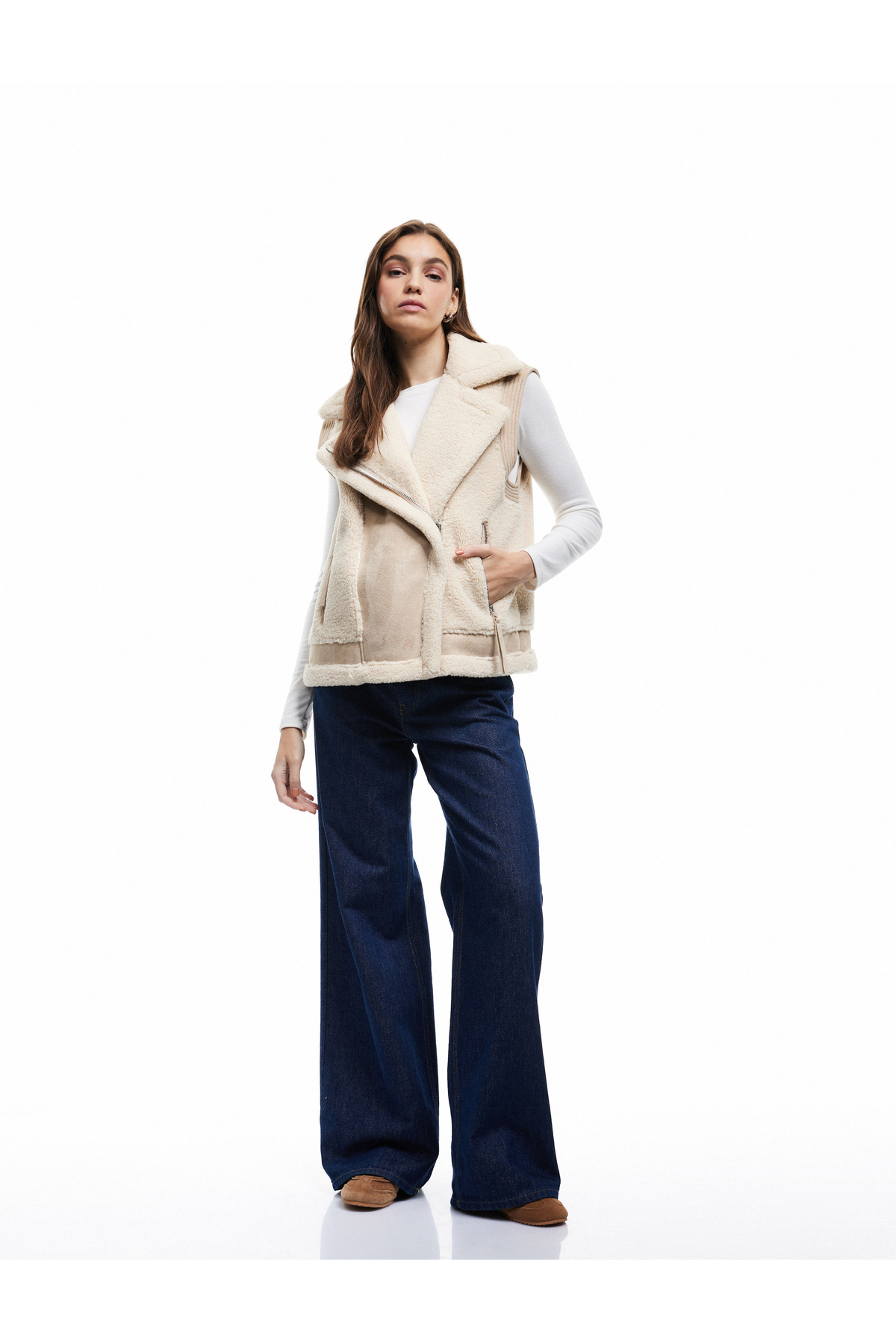 Kapüşonlu Çıtçıt Düğmeli Suni Kürk Yelek Kapüşonlu Çıtçıt Düğmeli Suni Kürk Yelek 5WAL20003IW 40