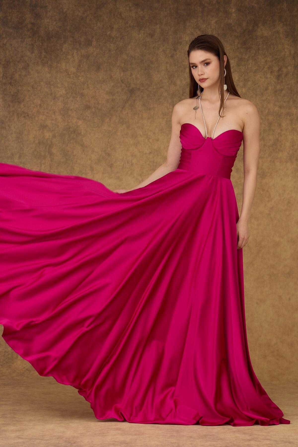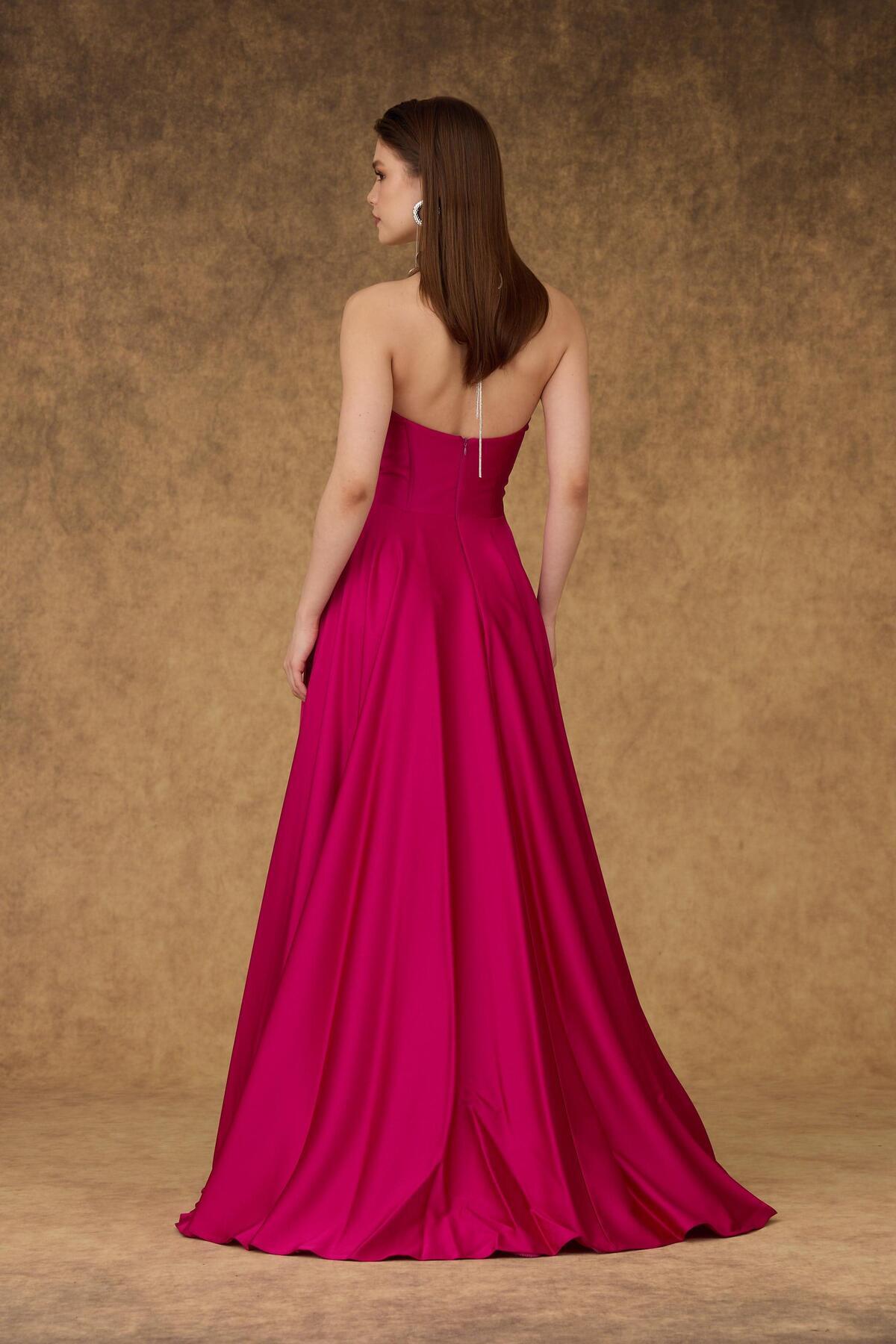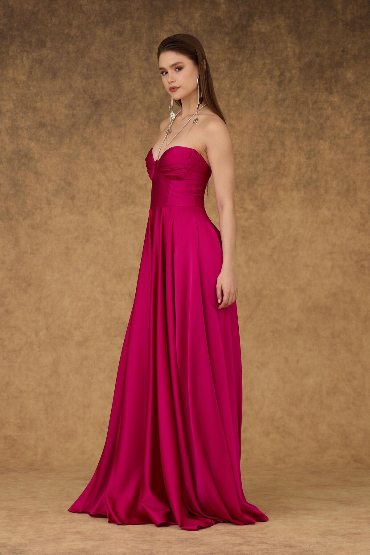Fuşya Saten Straplez Uzun Abiye Elbise ve Davet Elbisesi Fuşya Saten Straplez Uzun Abiye Elbise ve Davet Elbisesi 58130 42