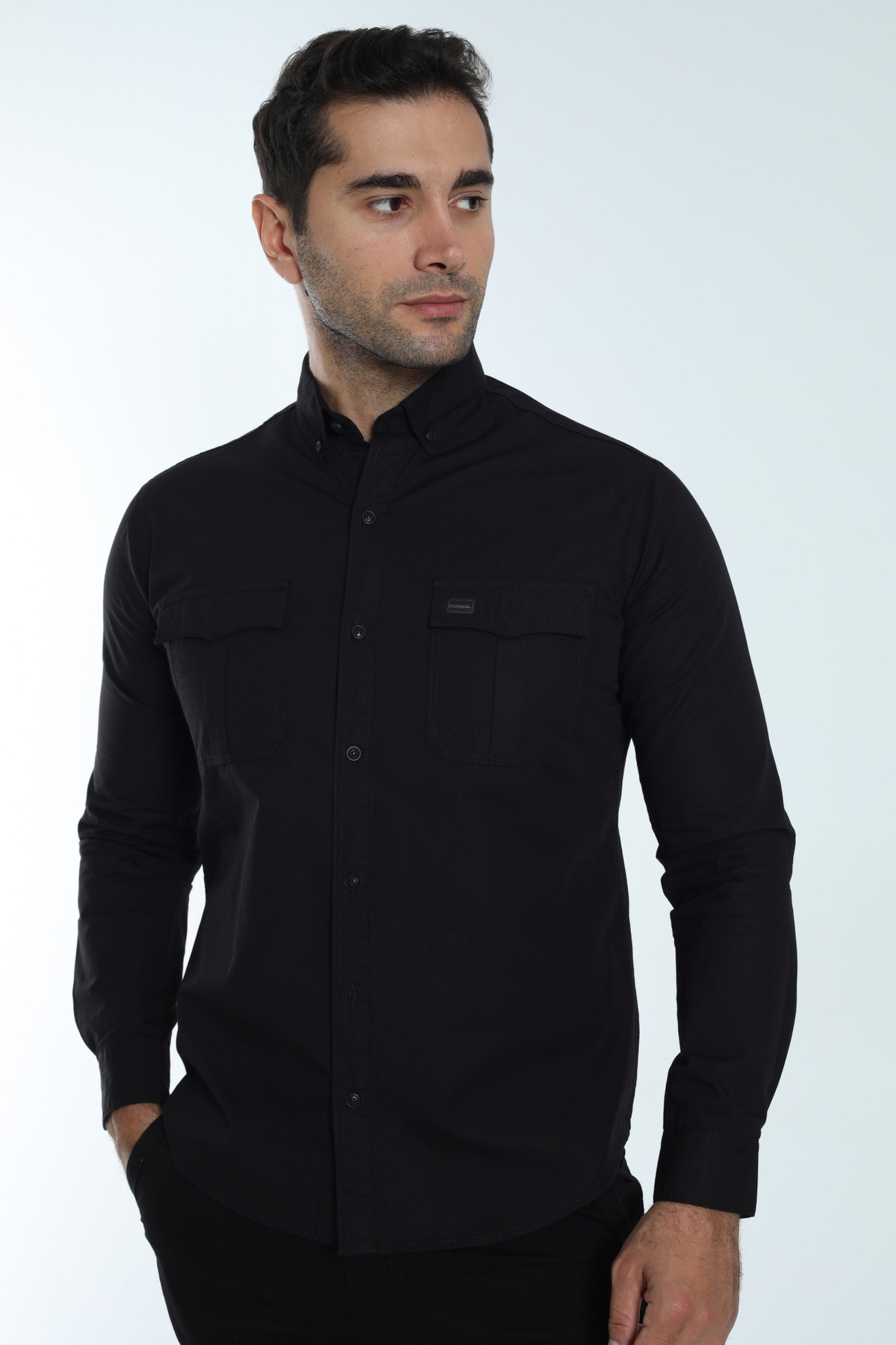 Erkek Pamuklu Regular Fit Siyah Sonbahar/kışlık Çift Cep Kapaklı Gömlek Erkek Pamuklu Regular Fit Siyah Sonbahar/kışlık Çift Cep Kapaklı Gömlek 2379 10-1001 2XL
