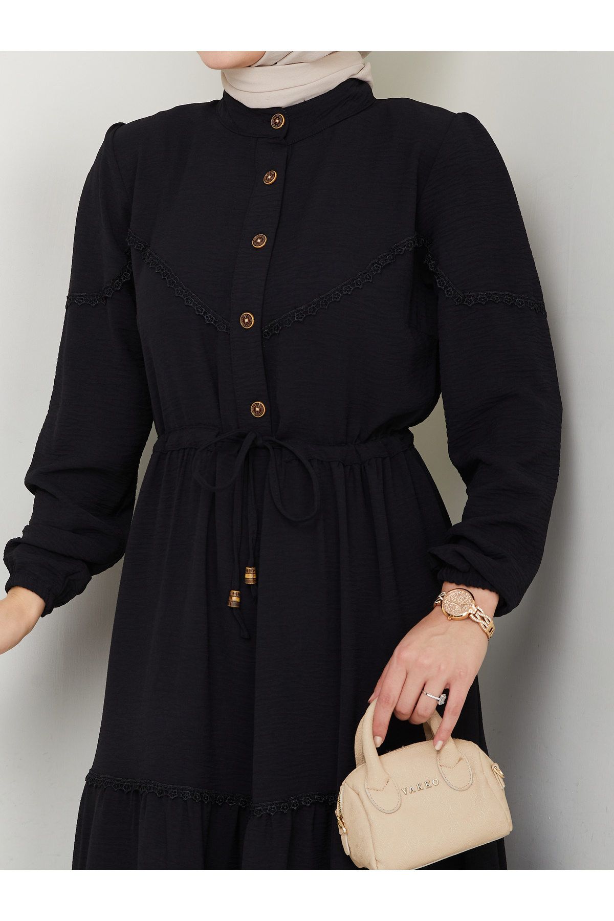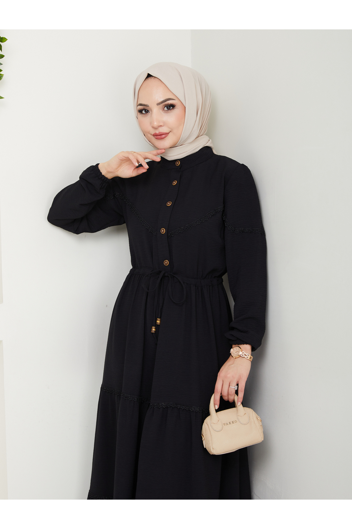 KADIN DANTELLİ KETEN TESETTÜR ELBİSE KADIN DANTELLİ KETEN TESETTÜR ELBİSE 6601 48