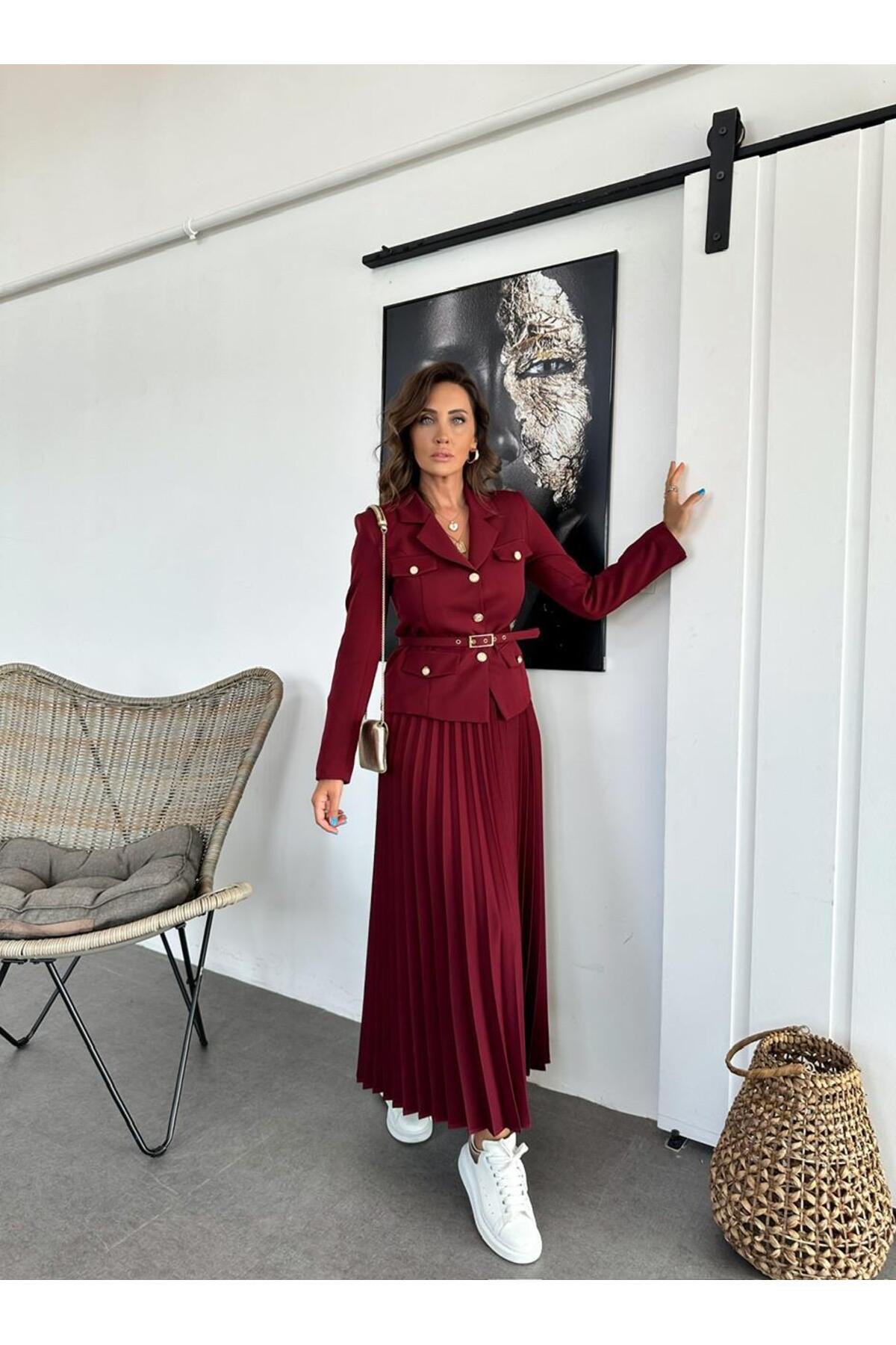 Elizabeth Gold Kemerli - Düğmeli Blazer Ceket Ve Piliseli Uzun Etek Takım Elizabeth Gold Kemerli - Düğmeli Blazer Ceket Ve Piliseli Uzun Etek Takım 8363737378272 XL