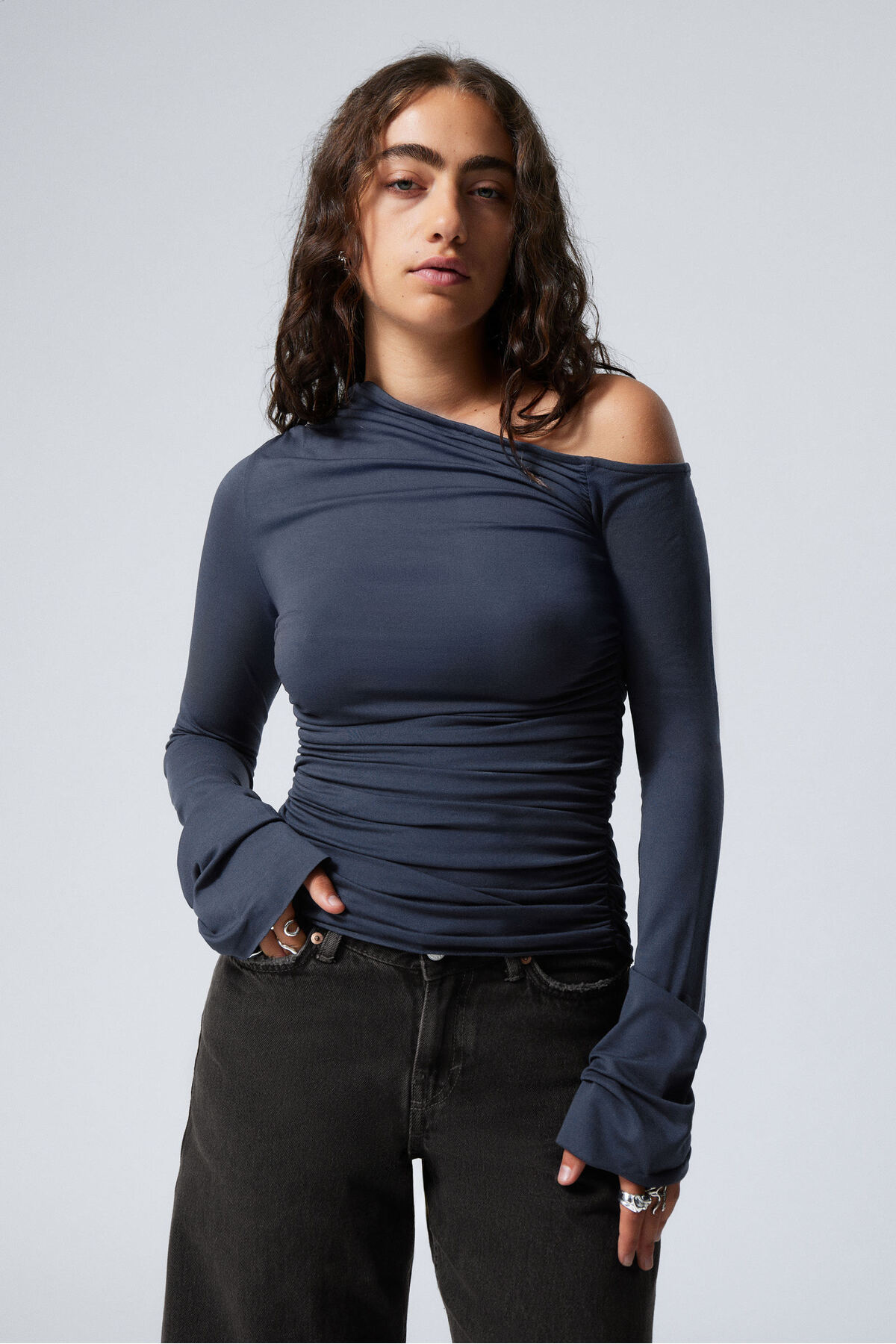 Tek Omzu Açık Dalgıç Kumaş Büzgülü Bluz Tek Omzu Açık Dalgıç Kumaş Büzgülü Bluz 2536 L