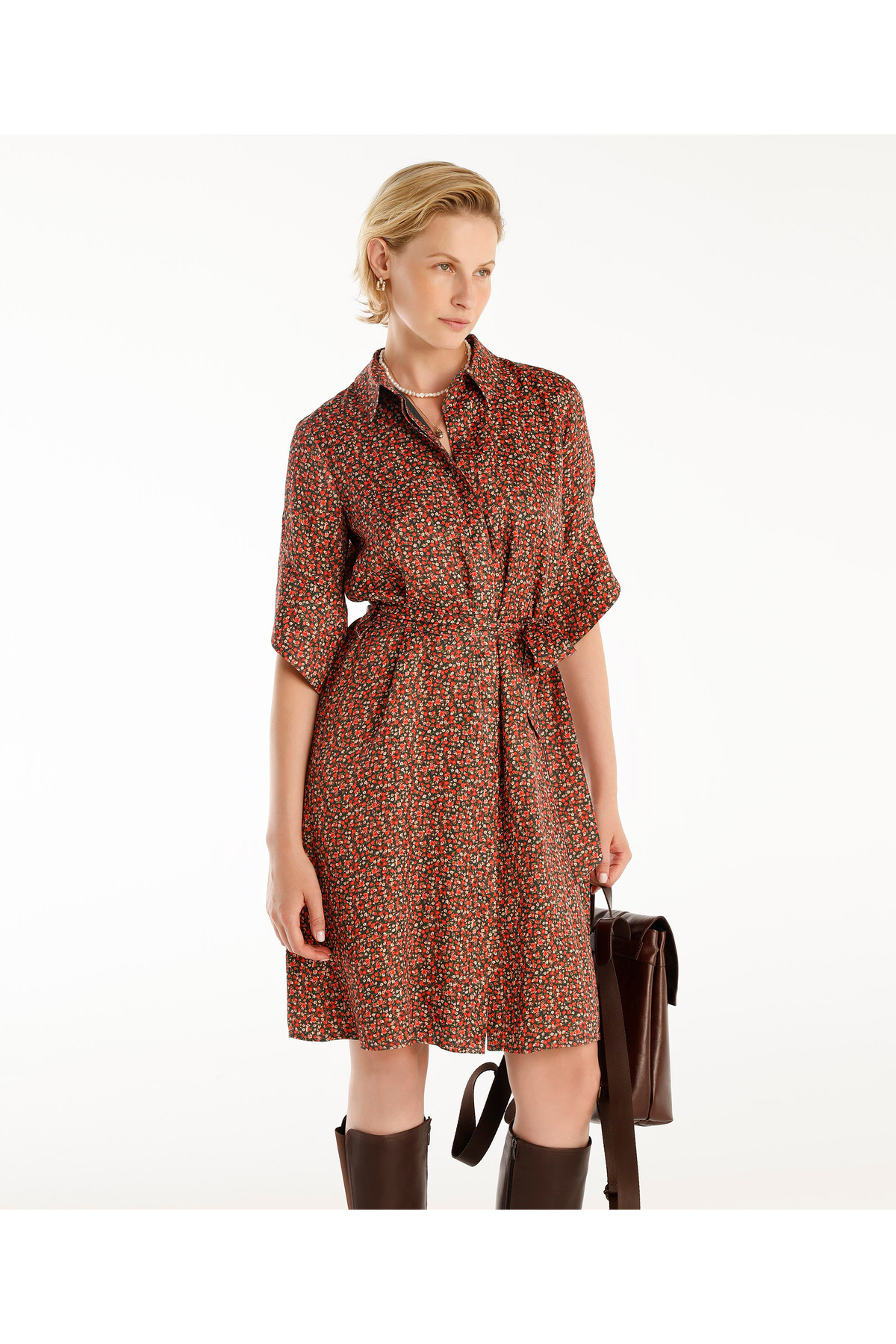 Kuşaklı Uzun Kollu Gömlek Elbise Kuşaklı Uzun Kollu Gömlek Elbise 24KKEL7004 44
