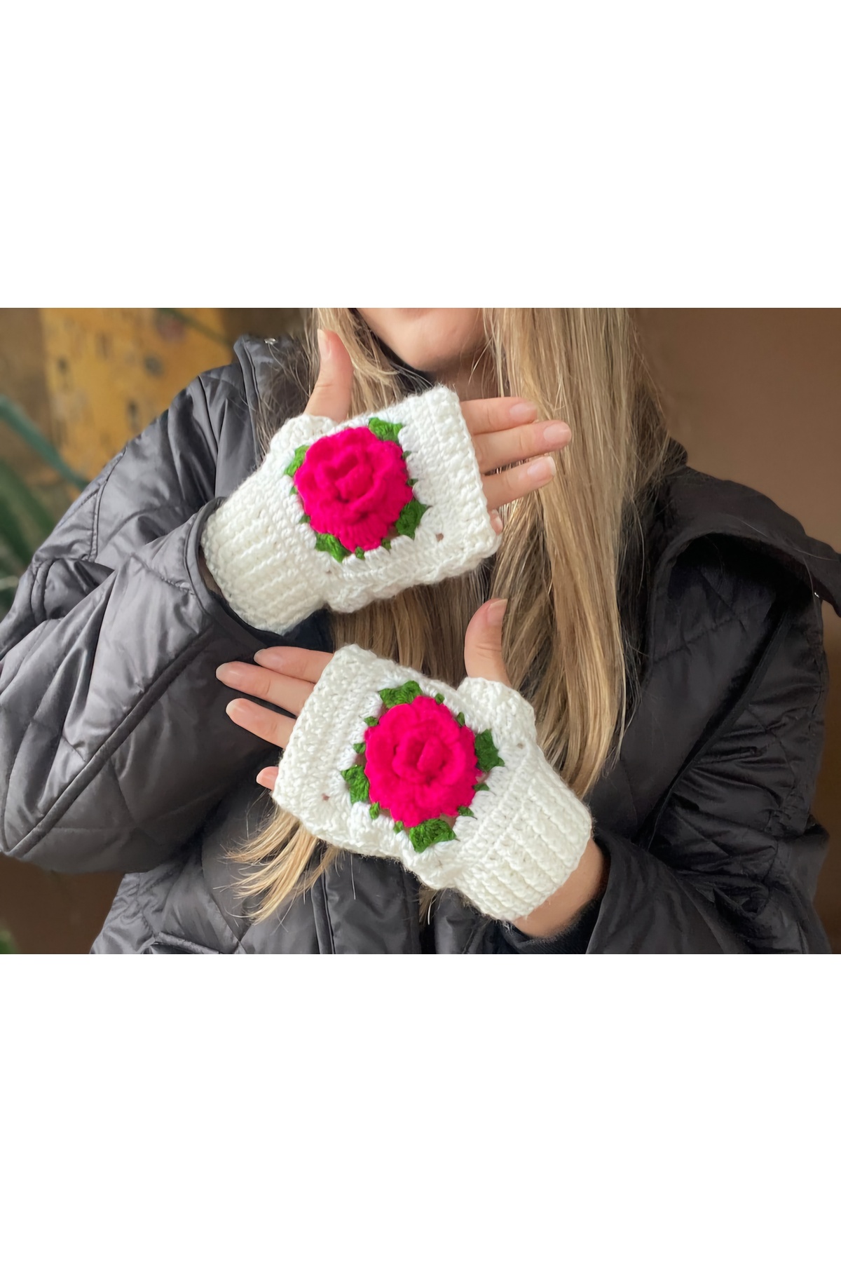 Parmaksız Gül Detaylı Eldiven, El Örgüsü eldiven , Tığ işi eldive Parmaksız Gül Detaylı Eldiven, El Örgüsü eldiven , Tığ işi eldive ELDV6757PGG 1