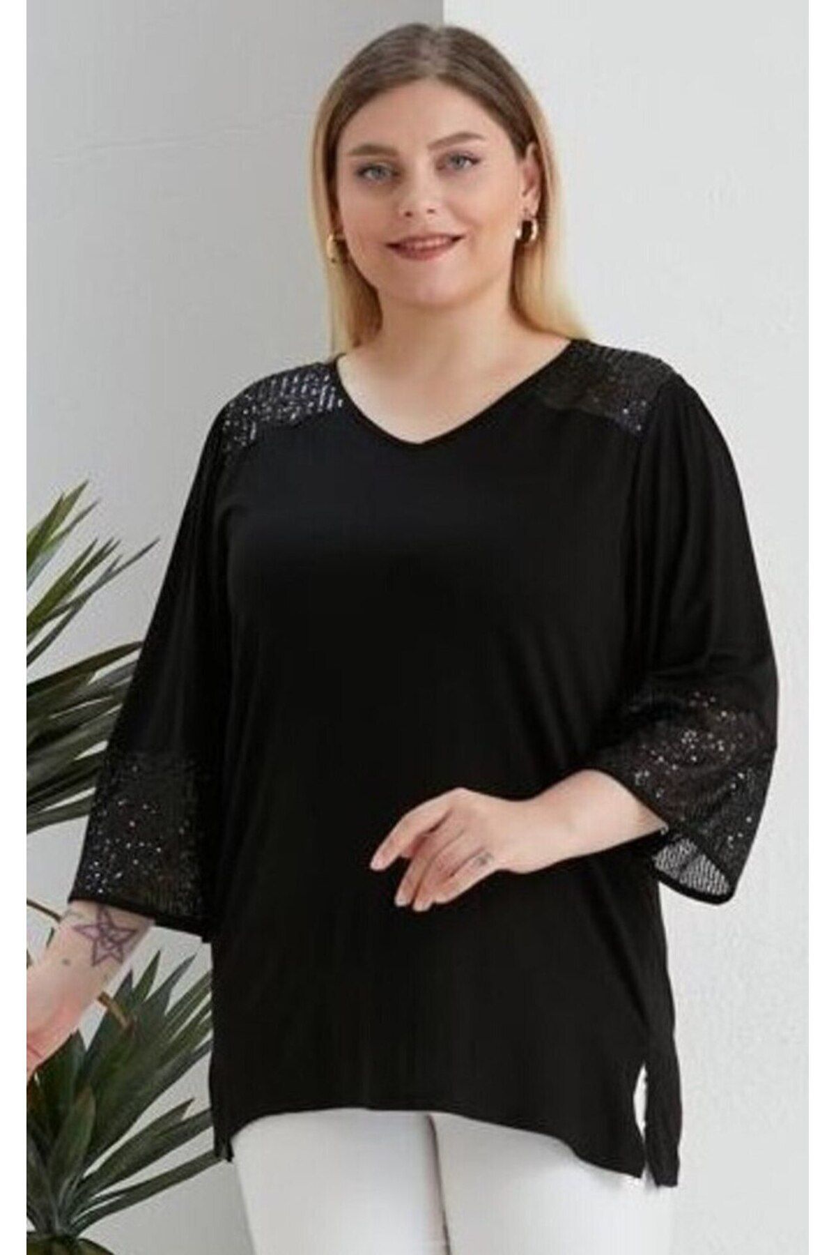 Kadın Büyük Beden V Yaka Payet Detaylı Şık Abiye Bluz 24165 Kadın Büyük Beden V Yaka Payet Detaylı Şık Abiye Bluz 24165 52