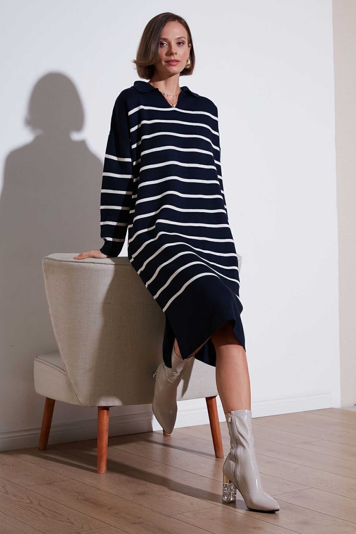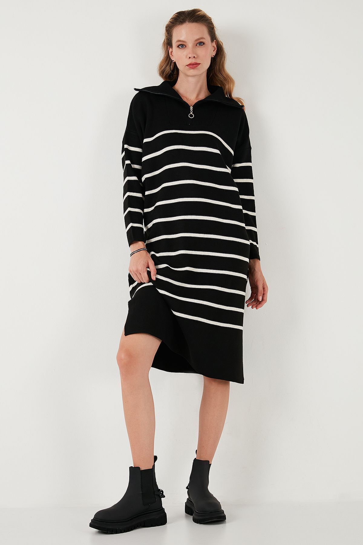Çizgili Yarım Fermuarlı Yırtmaçlı Triko Elbise ELBİSE 4615183 Çizgili Yarım Fermuarlı Yırtmaçlı Triko Elbise ELBİSE 4615183 Standart