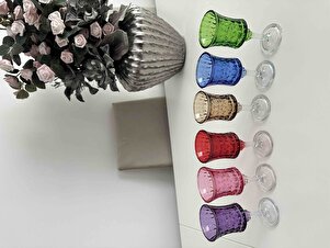 EL İŞİ 6lı Rengarenk Su-Kahve yanı Bardağı -6 Renkli Kristal Ayaklı Su Bardağı -Kahve Yanı Su Bardak EL İŞİ 6lı Rengarenk Su-Kahve yanı Bardağı -6 Renkli Kristal Ayaklı Su Bardağı -Kahve Yanı Su Bardak bhms6rnk تک سایز