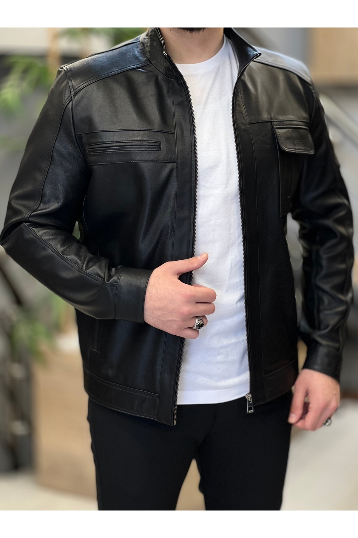 Siyah Erkek Deri Mont(%100 HAKİKİ KUZU DERİSİ) Regular Fit Siyah Erkek Deri Mont(%100 HAKİKİ KUZU DERİSİ) Regular Fit N258F 5XL
