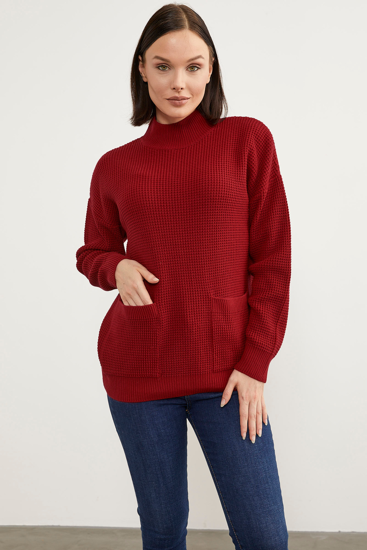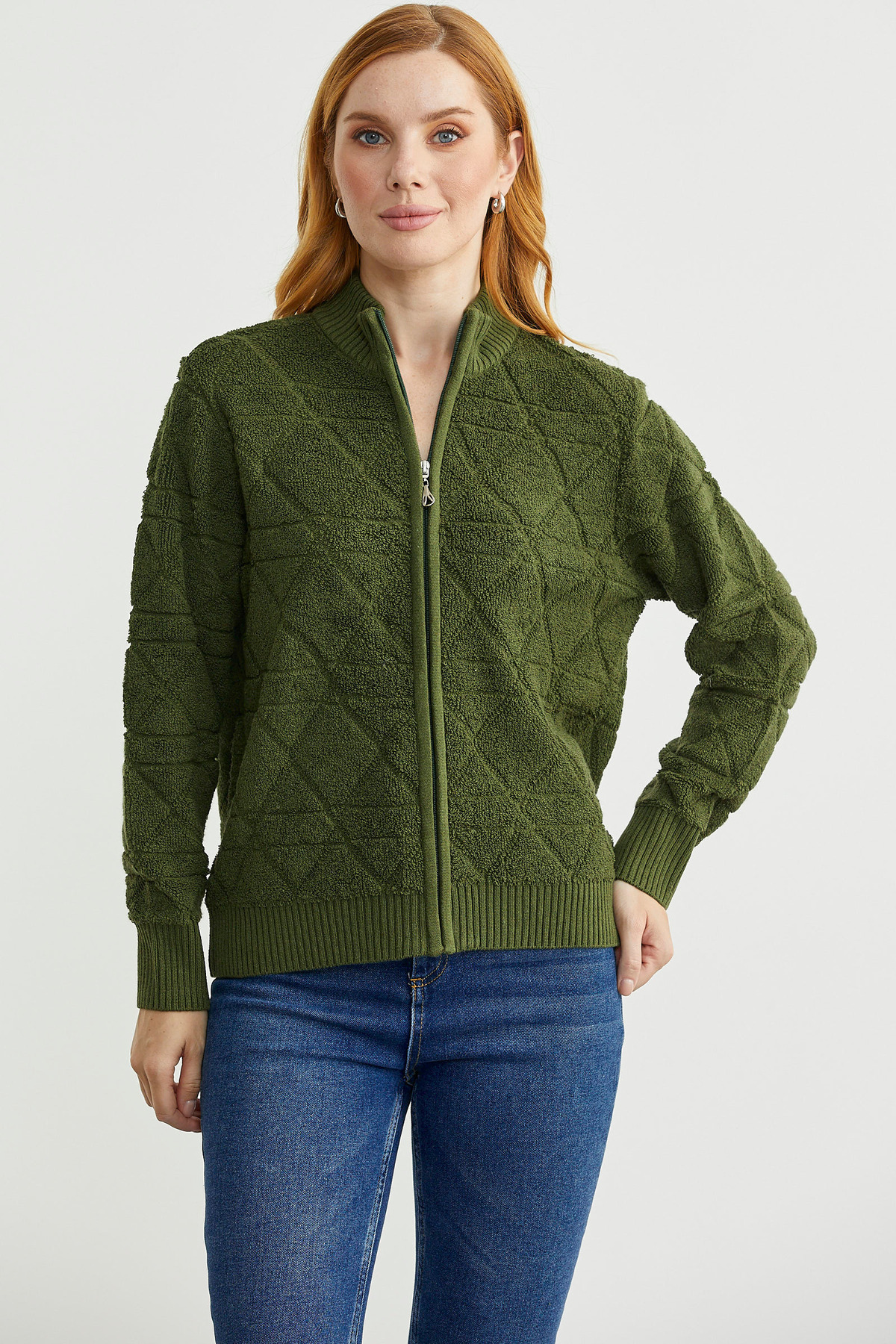 Tam Balıkçı Dökümlü Triko Kazak - Yeşil Tam Balıkçı Dökümlü Triko Kazak - Yeşil 23K2115-32475.0001 M