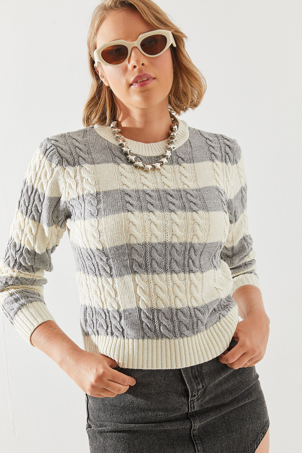 Motif Detaylı V Yaka Yünlü Triko Kazak - Sarı Motif Detaylı V Yaka Yünlü Triko Kazak - Sarı 24K2115-32507.0001 L